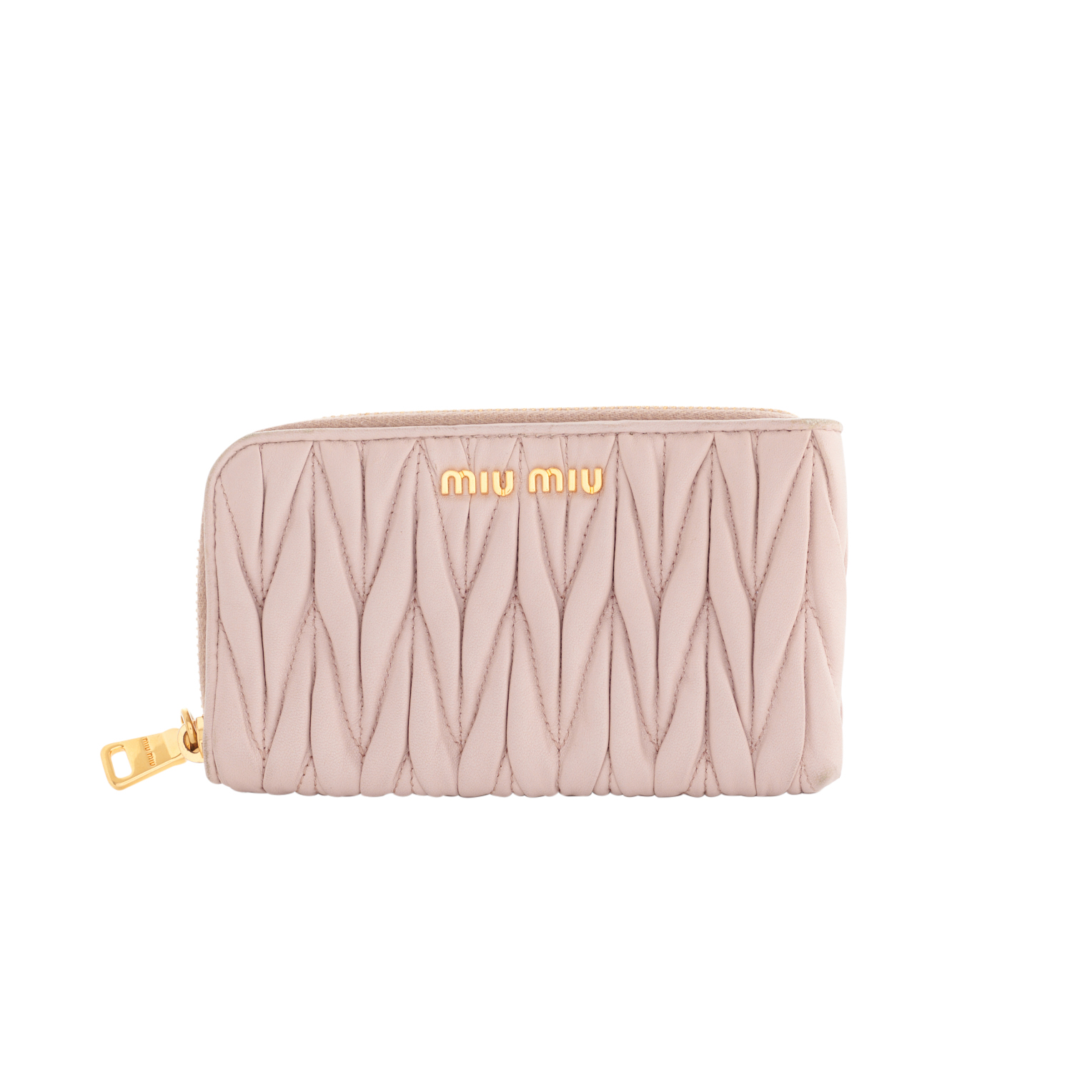 MIU MIU, A PURSE STYLED IN DUSTY ROSE MATELASSÉ LEATHER AND GOLD TONE HARDWARE, 9 X 14 X 1CM