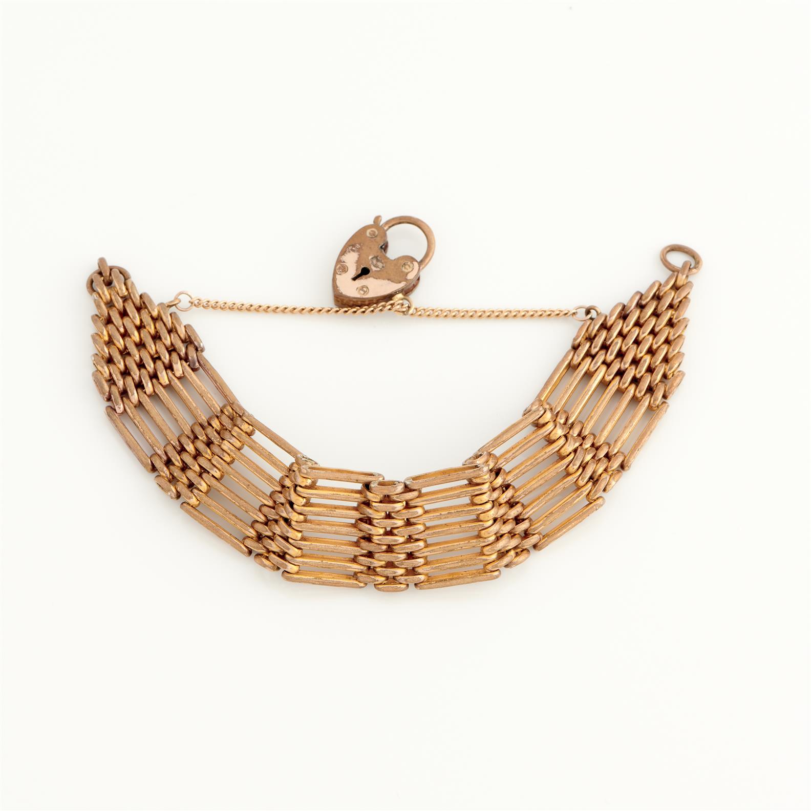 A GATELINK BRACELET TO A HEART PADLOCK CLASP IN GOLD PLATE, 190MM