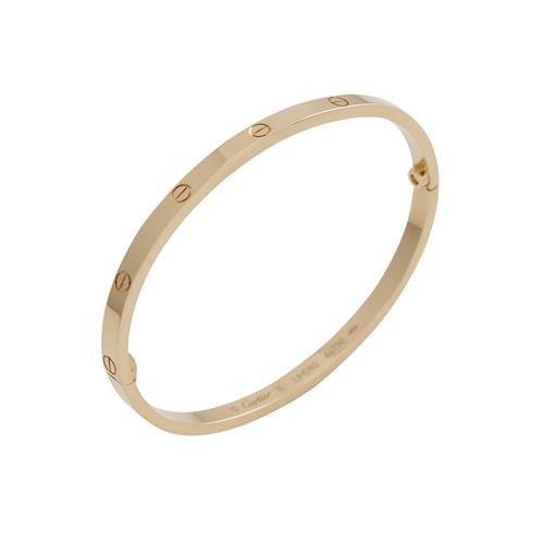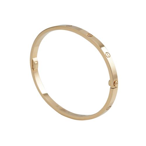 The 4mm wide oval hinged bangle decorated at intervals with twelve applied screwhead motifs, with screw down clasp, signed Cartier and numbered JJH080, inner diameter approximately 160mm (size 16), gross weight 17.9 grams.