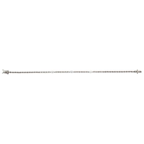 Centring a line of claw-set brilliant-cut diamonds with three feature marquise-cut diamonds on a fancy link chain, the diamonds together weighing approximately 1.06 carats, completed by a tongue and groove clasp, length 185mm.