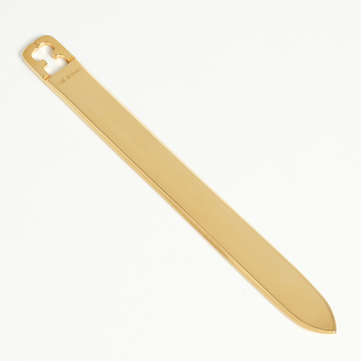 SALVATORE FERRAGAMO, A VINTAGE LETTER OPENER IN GOLD PLATE, 15.2 X 1.5CM, ACCOMPANIED BY A BOX