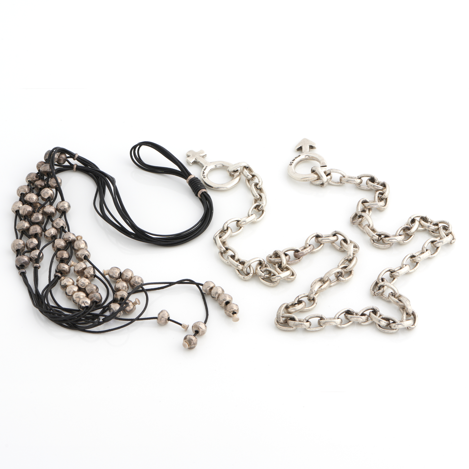 UNO DE 50, TWO FANCY LINK DRESS NECKLACES IN SILVER