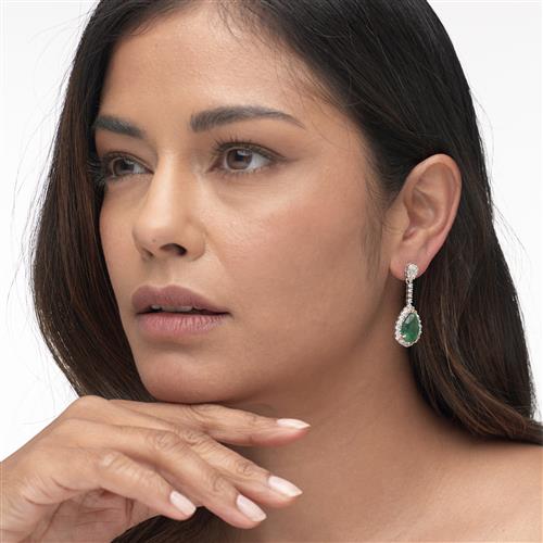 Emeralds are of medium hue with typical crystal inclusions, some surface reaching. Diamonds approximately G-H colour, SI clarity as graded within the confines of the mount