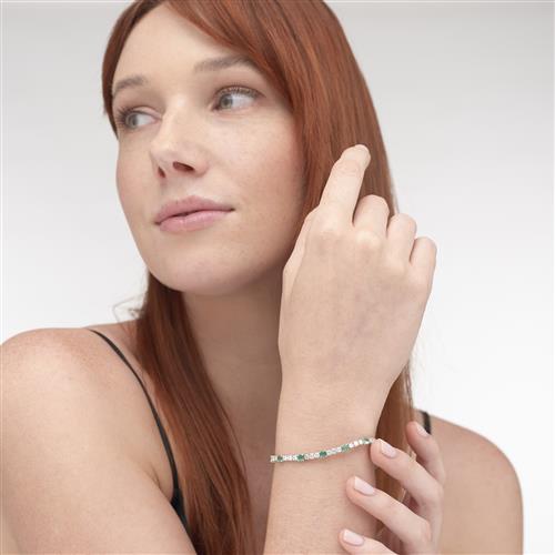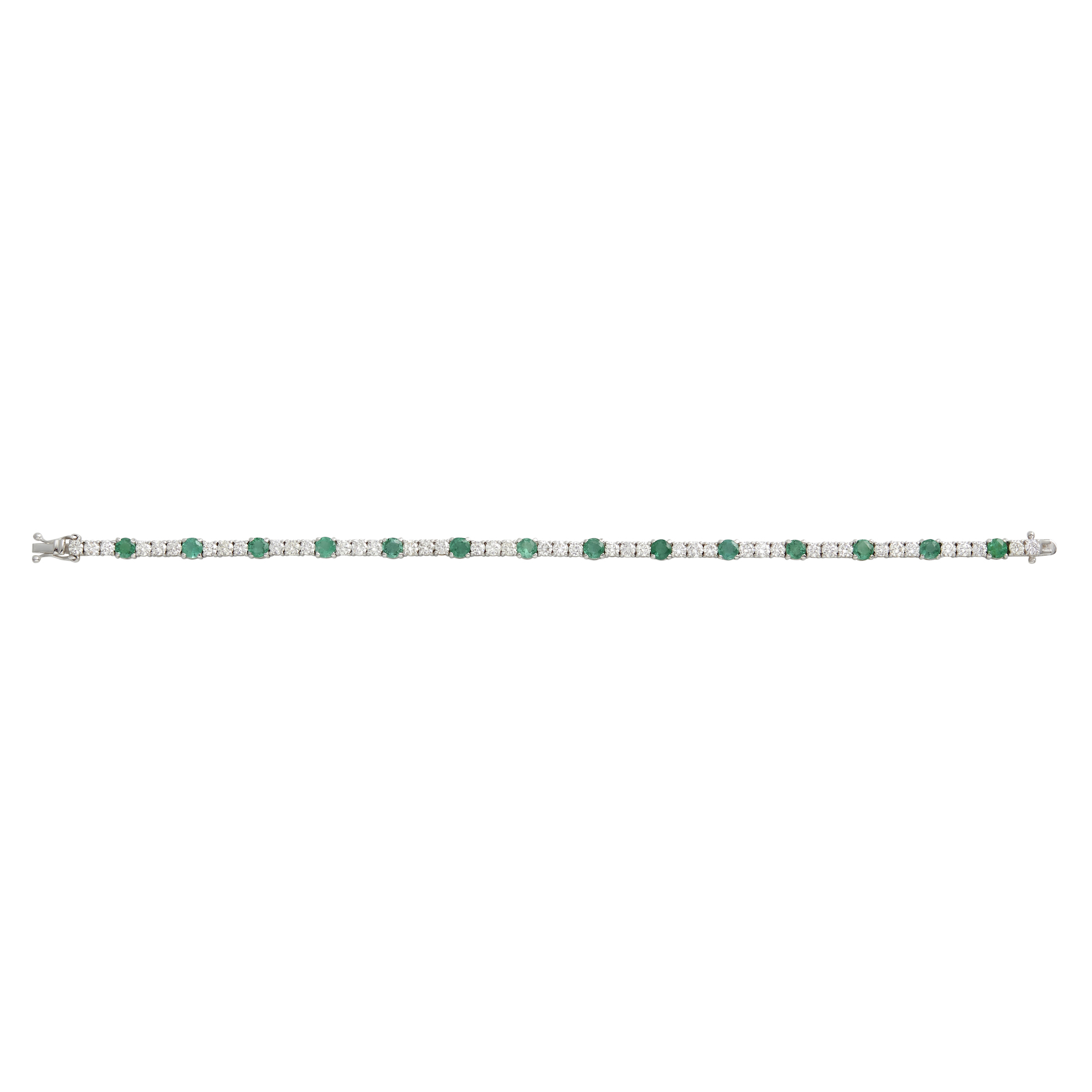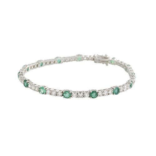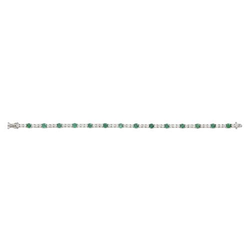 Modelled as a continuous line of claw-set brilliant-cut diamonds, spaced at intervals with claw-set circular-cut emeralds, the diamonds together weighing approximately 3.30 carats, the emeralds together weighing approximately 3.85 carats, completed by a tongue and groove clasp, length 180mm, gross weight 10.1 grams.