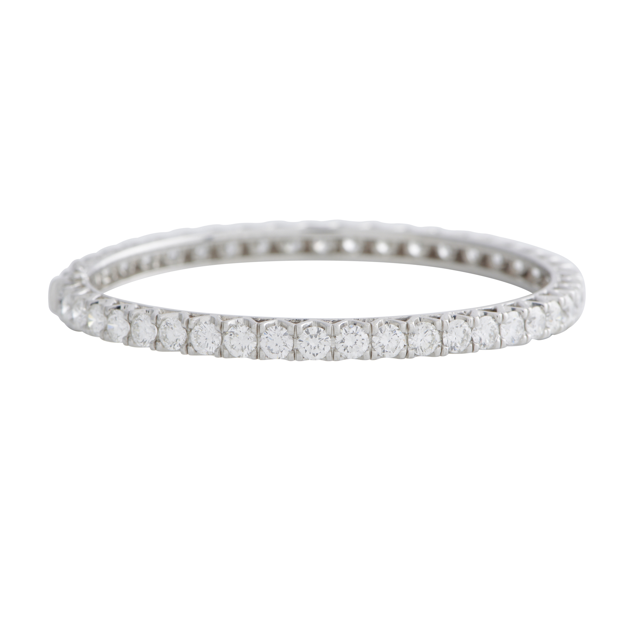 The hinged round bangle, claw set with forty-four claw-set brilliant-cut diamonds together weighing approximately 9.02 carats, completed by a tongue and groove clasp, inner circumference 170mm, gross weight 18.3 grams.