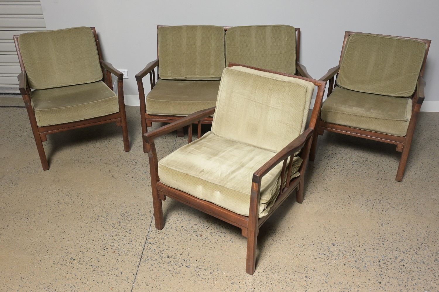 A DECRO FOUR PIECE SALON SUITE (74H X 64W X 74D) CHAIRS, (76W X 113W X 78D) SOFA (A/F) (PLEASE NOTE THIS HEAVY ITEM MUST BE REMOVED BY CARRIERS AT THE CUSTOMER'S EXPENSE. LEONARD JOEL STAFF CANNOT ASSIST CARRYING THIS ITEM) (X-LARGE)