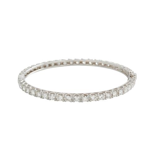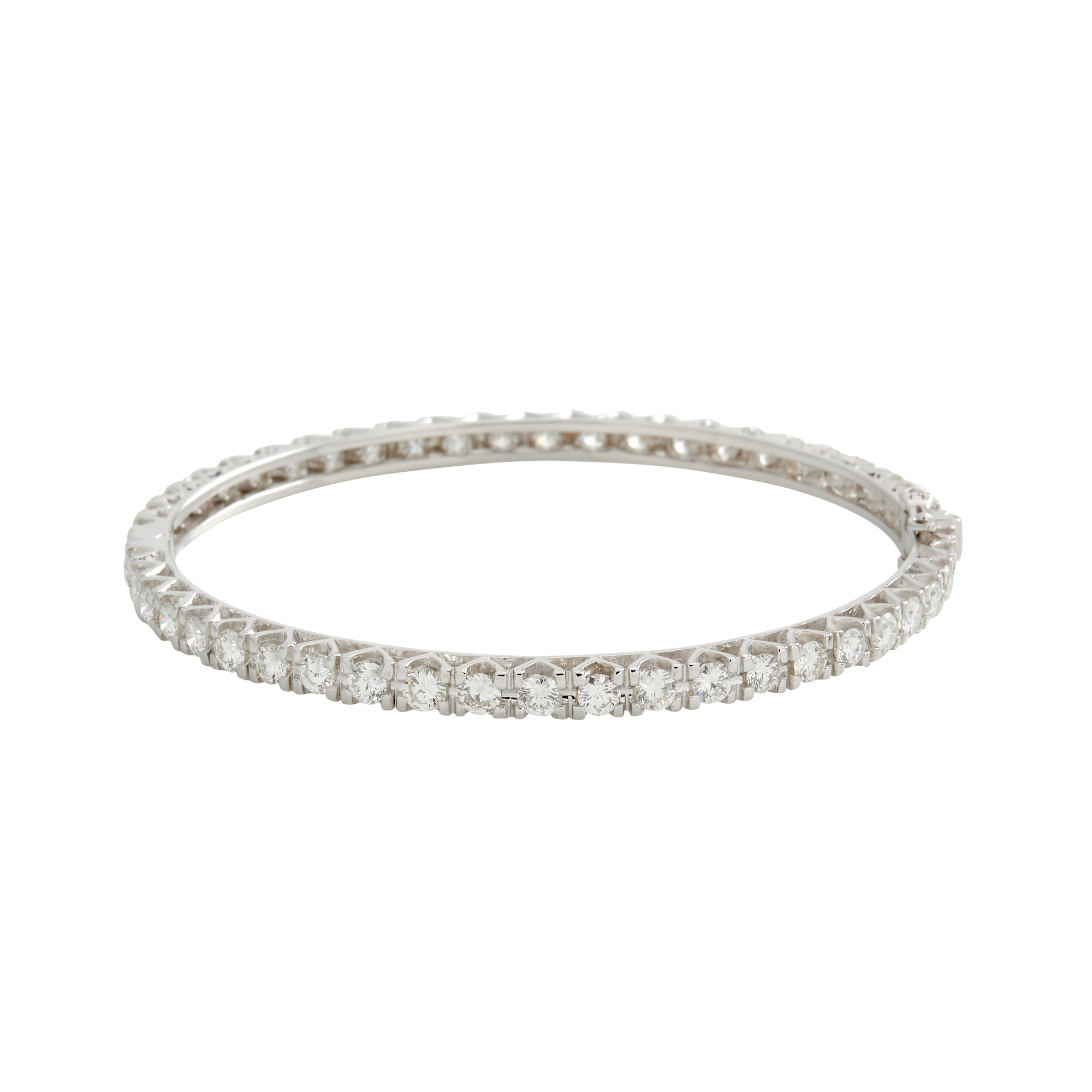 The hinged circular bangle, claw-set with forty-eight brilliant-cut diamonds together weighing approximately 5.18 carats,