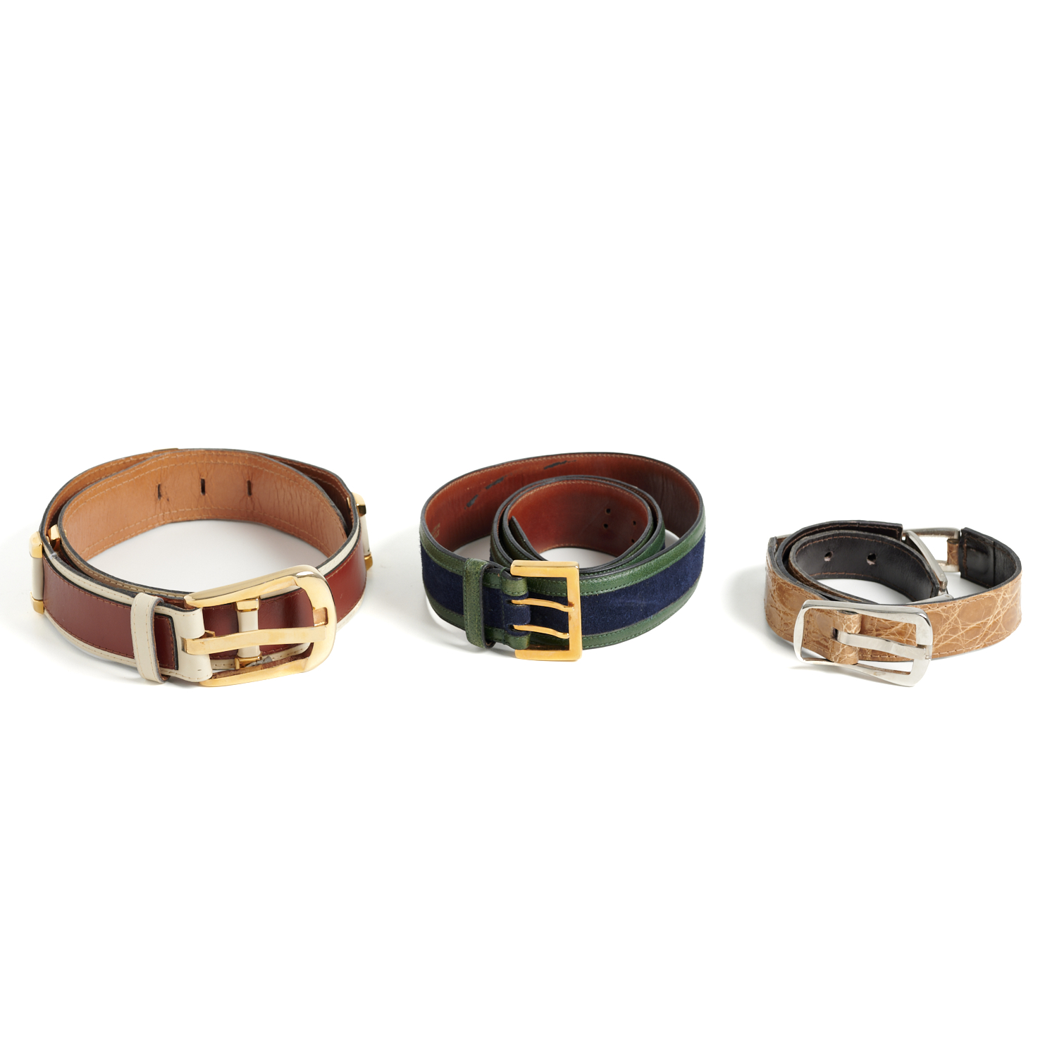 A COLLECTION OF THREE VINTAGE BELTS, INCLUDING A VALENTINO, UOMO AND TWO CHARLES JOURDAN BELTS