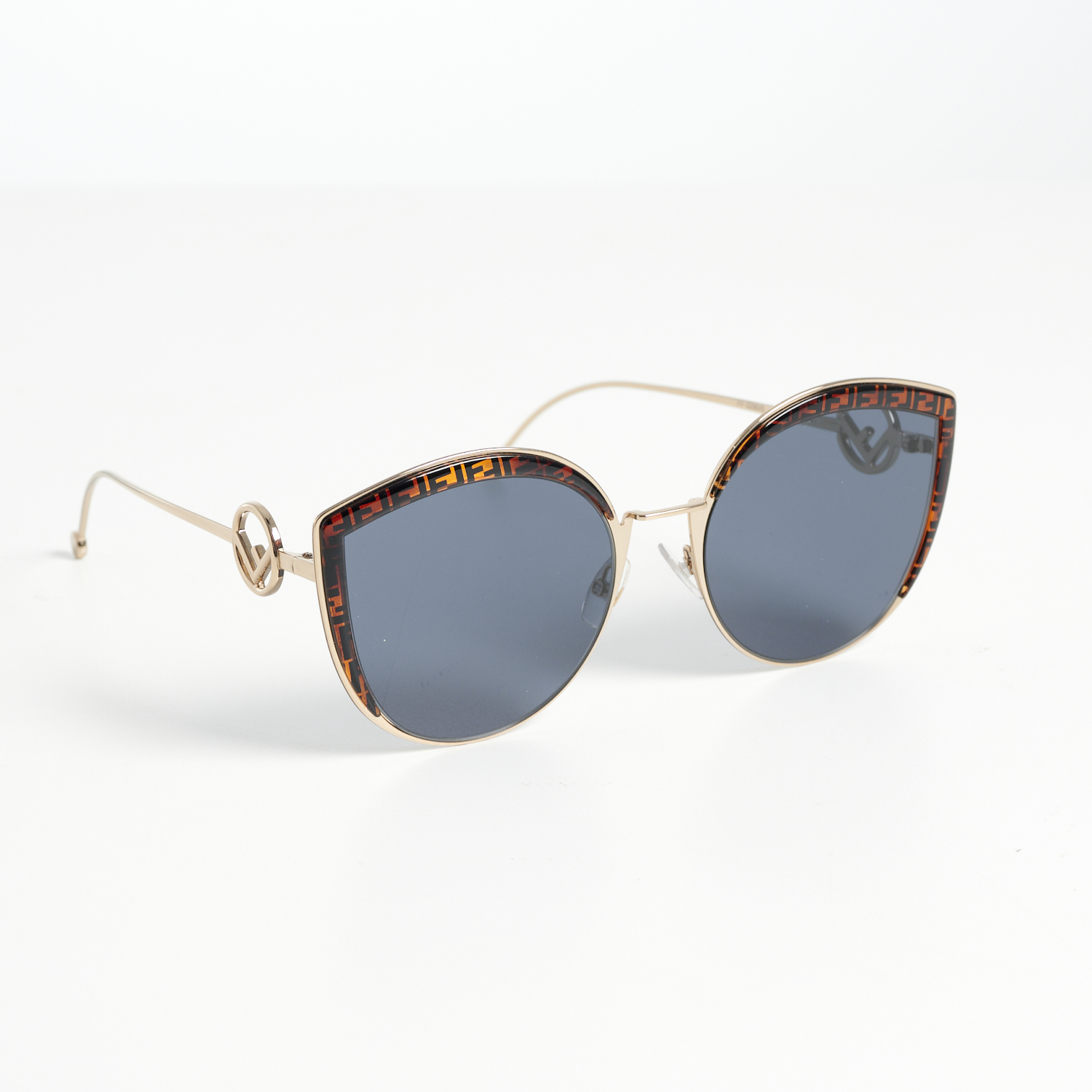 FENDI, A PAIR OF SUNGLASSES STYLED IN BROWN ZUCCA MONOGRAM COMPOSITE WITH SILVER TONE METAL, ACCOMPANIED BY A BOX