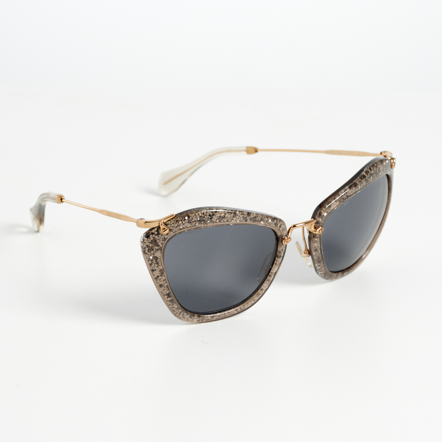 MIU MIU, A PAIR OF SUNGLASSES STYLED IN A GLITTER COMPOSITE WITH SILVER TONE METAL