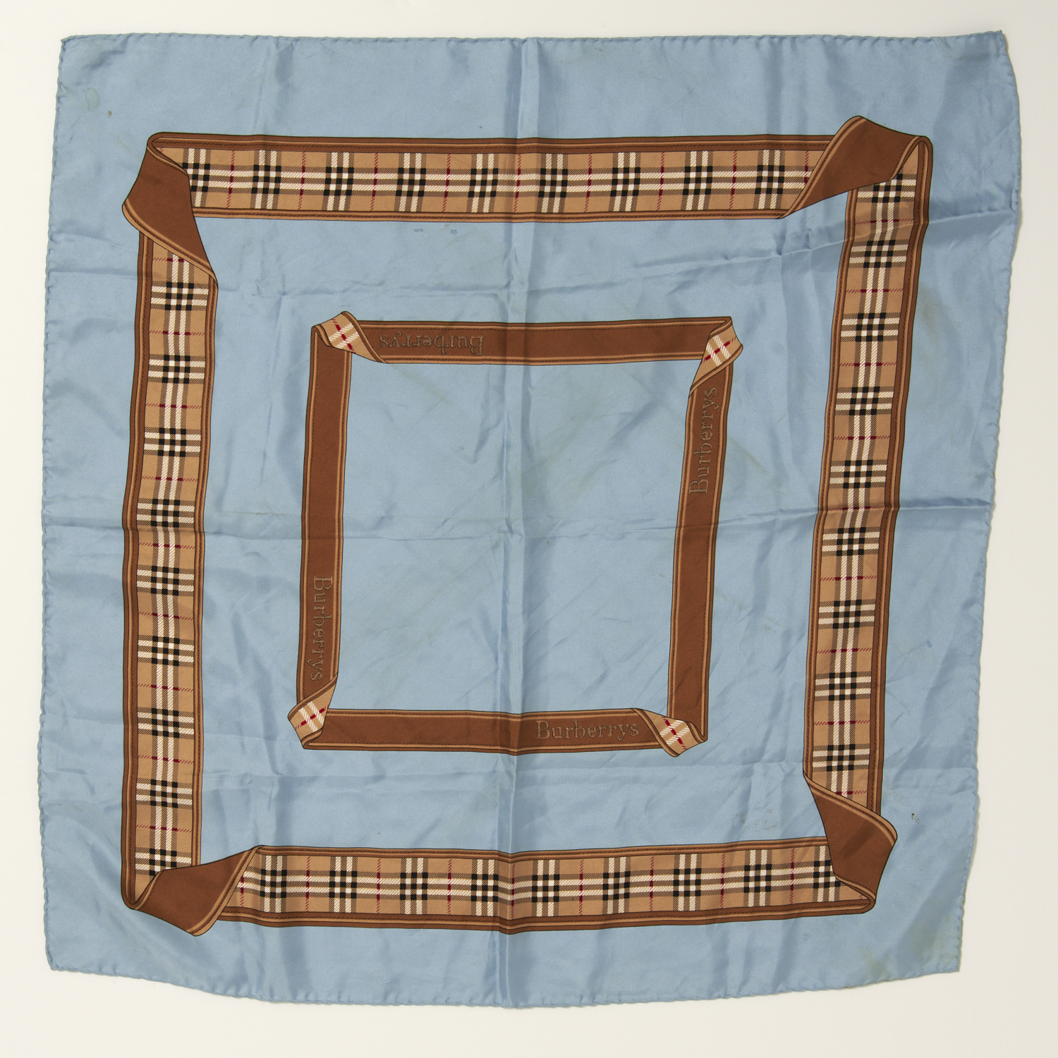 YVES SAINT LAURENT, A SILK SCARF, 87CM SQUARED, TOGETHER WITH A BURBERRY SILK SCARF, 67CM SQUARED