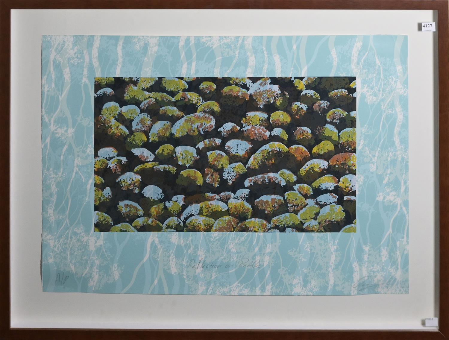 LIN ONUS, REFLECTIONS ON PEBBLES, SCREENPRINT ED. A/P, SIGNED, TITLED AND EDITIONED ON IMAGE, 50 X 70CM, FRAME SIZE: 65 X 85CM