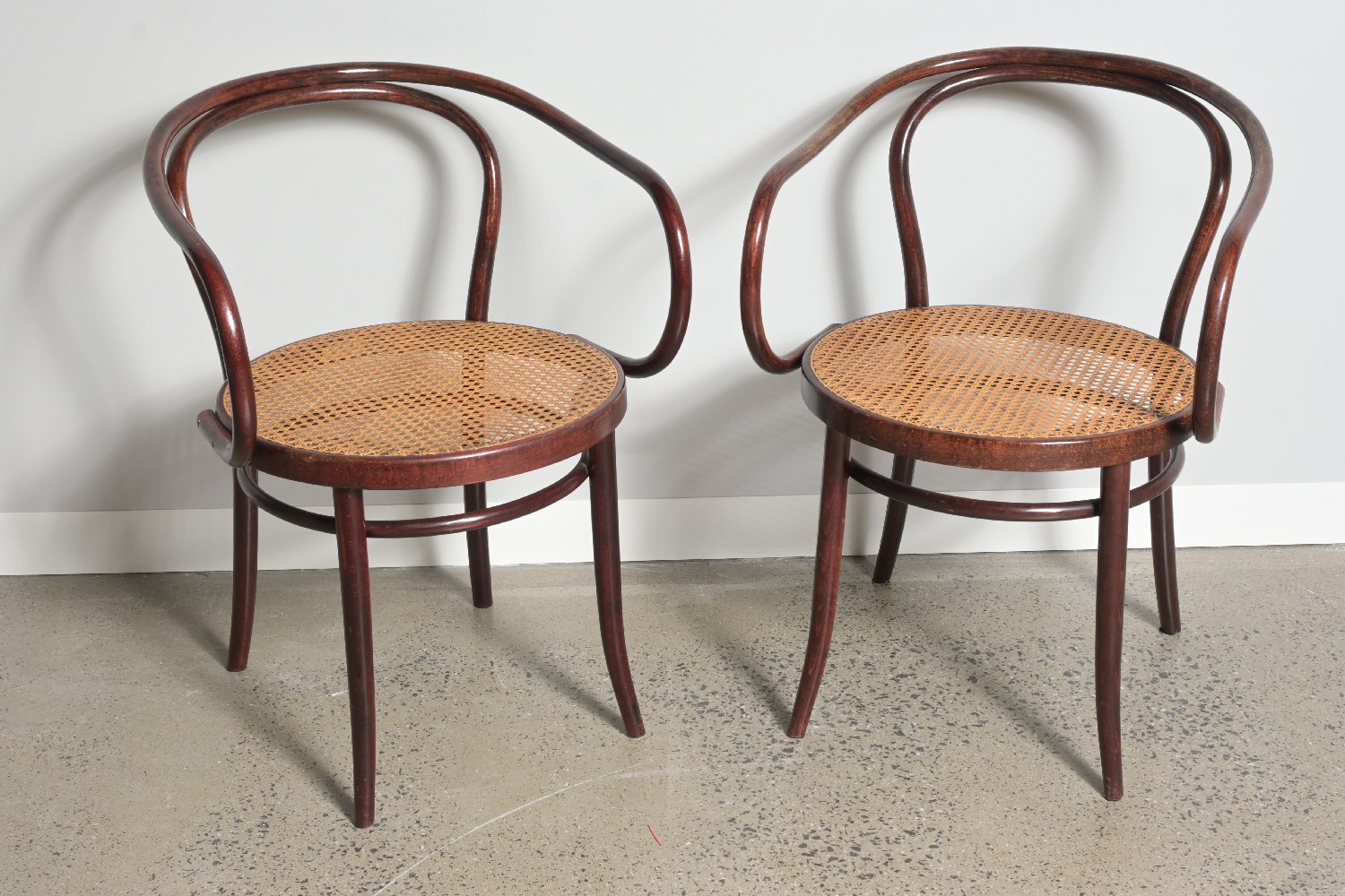 A PAIR OF BENTWOOD & RATTAN ARMCHAIRS (79H X 57W X 57D CM) (LEONARD JOEL DELIVERY: LARGE)
