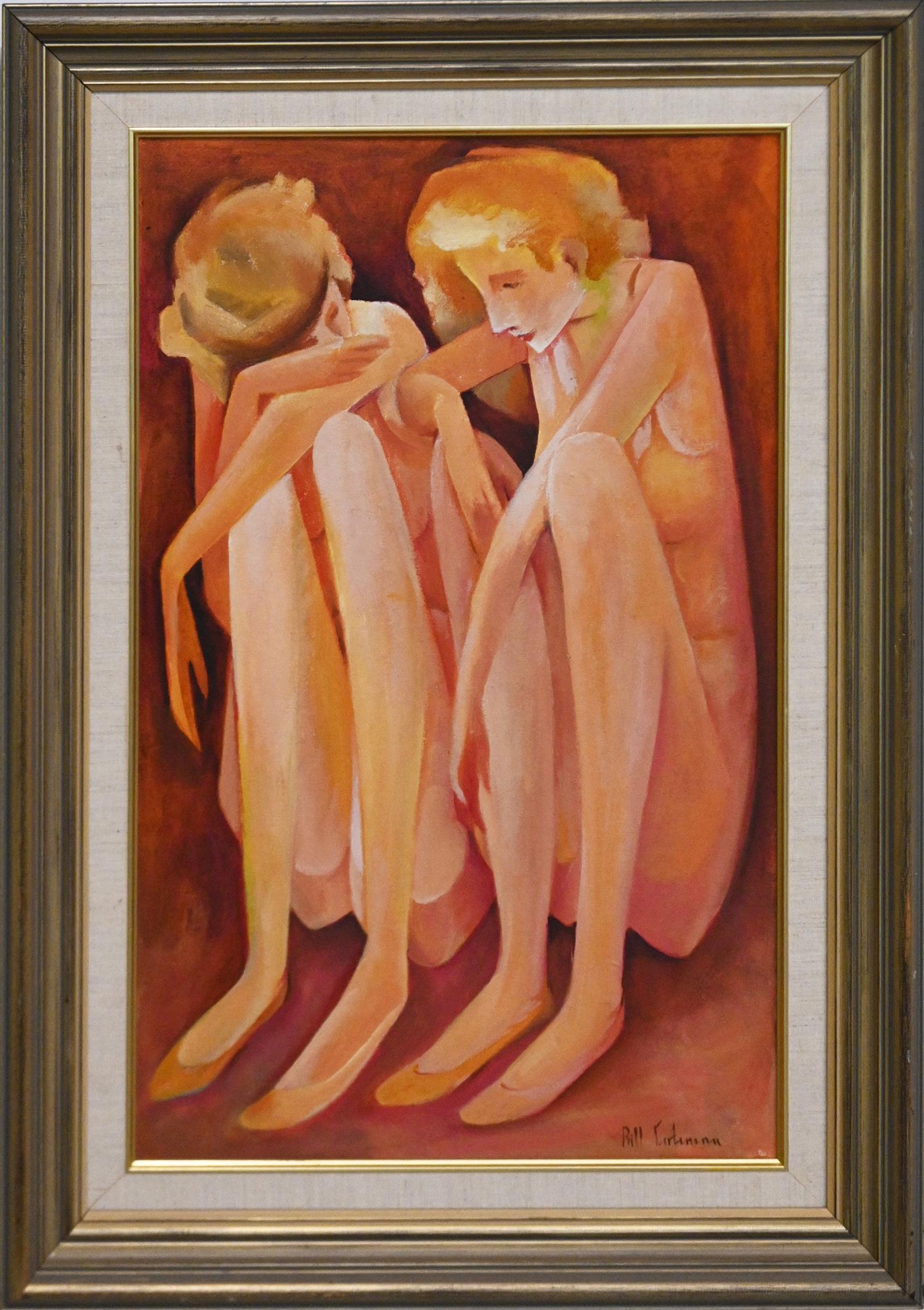 BILL COLEMAN, RESTING DANCERS, OIL ON CANVAS BOARD, SIGNED LOWER RIGHT, TITLED VERSO, 71 X 44CM, FRAME SIZE: 90 X 63CM