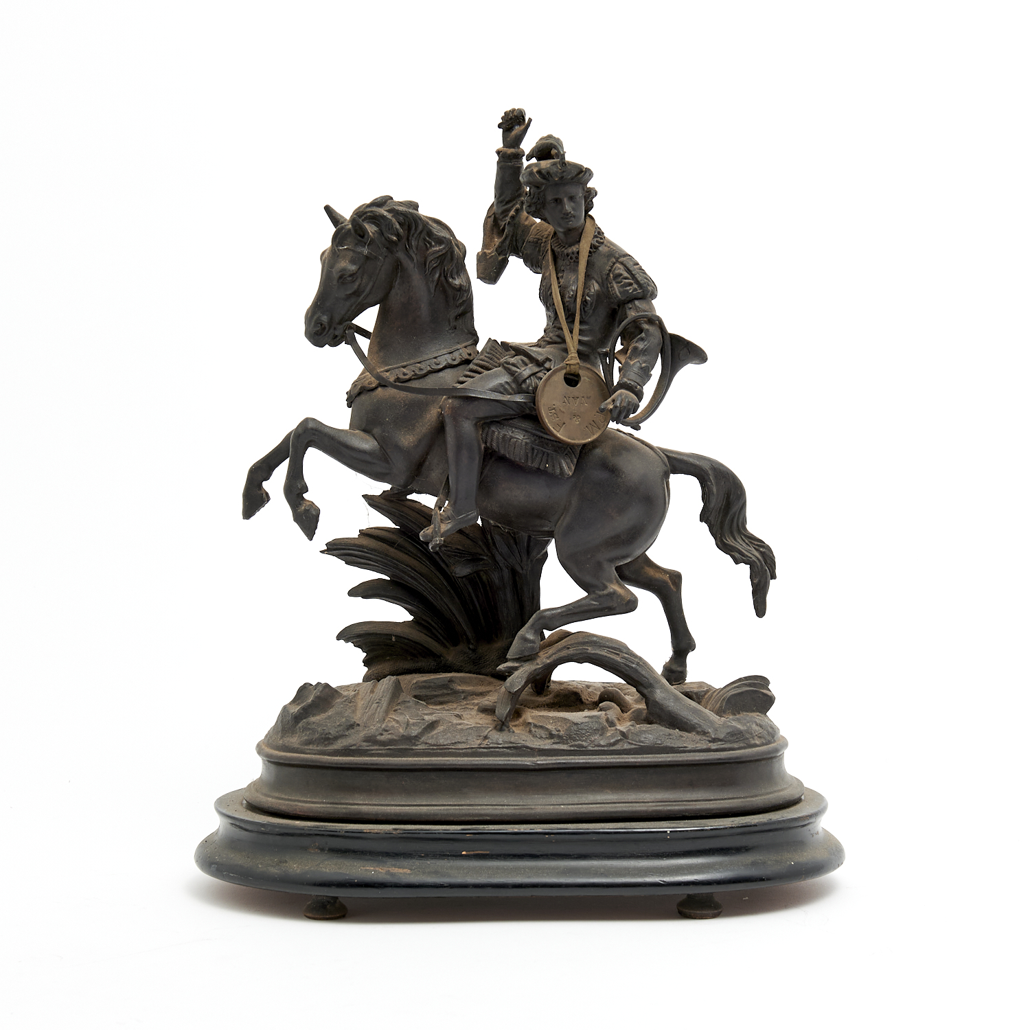 A 19TH CENTURY SPELTER FIGURE OF A HORSEMAN H.38CM, LEONARD JOEL DELIVERY SIZE: MEDIUM