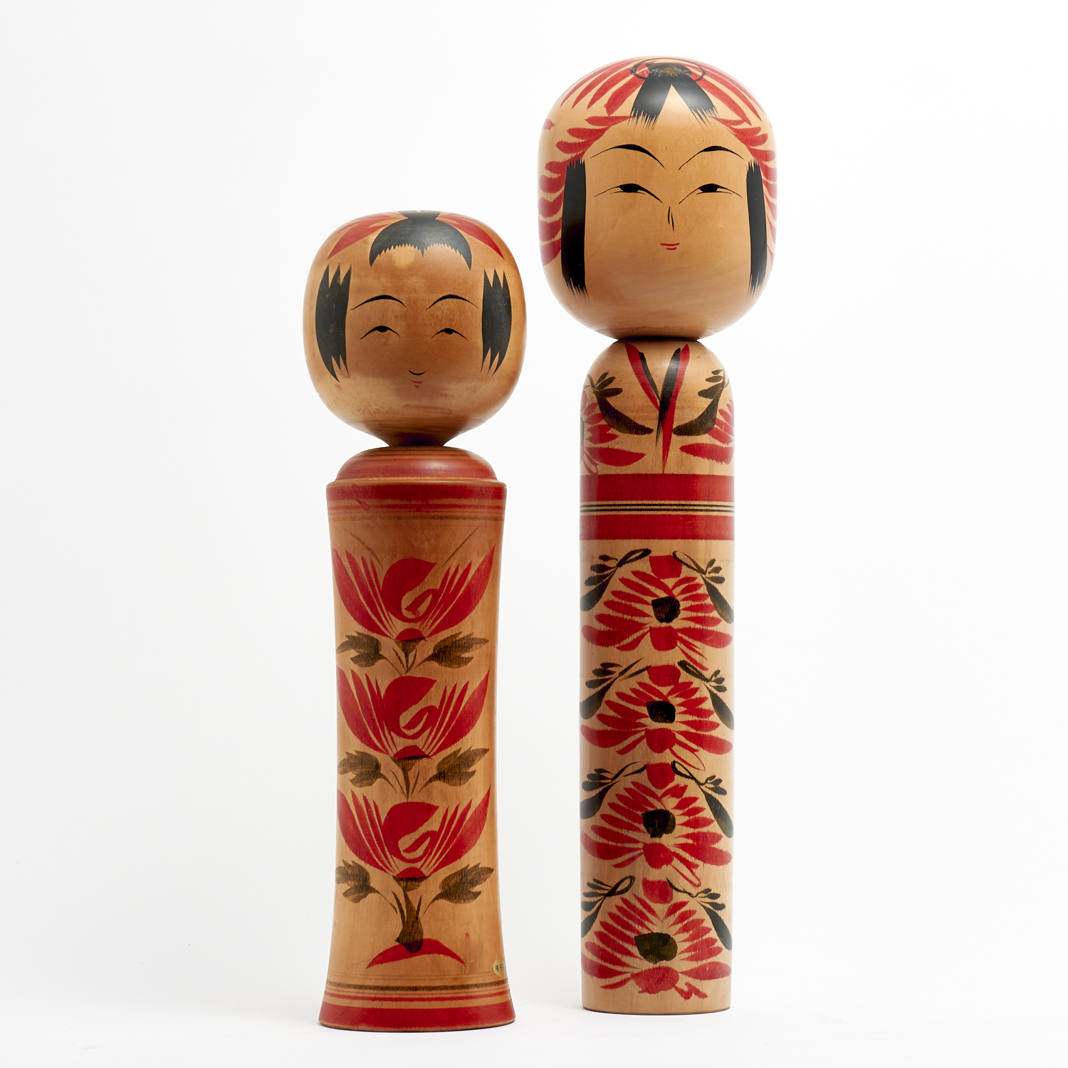 A LARGE PAIR OF HAND-PAINTED KOKESHI DOLLS H.54CM (TALLEST), LEONARD JOEL DELIVERY SIZE: MEDIUM