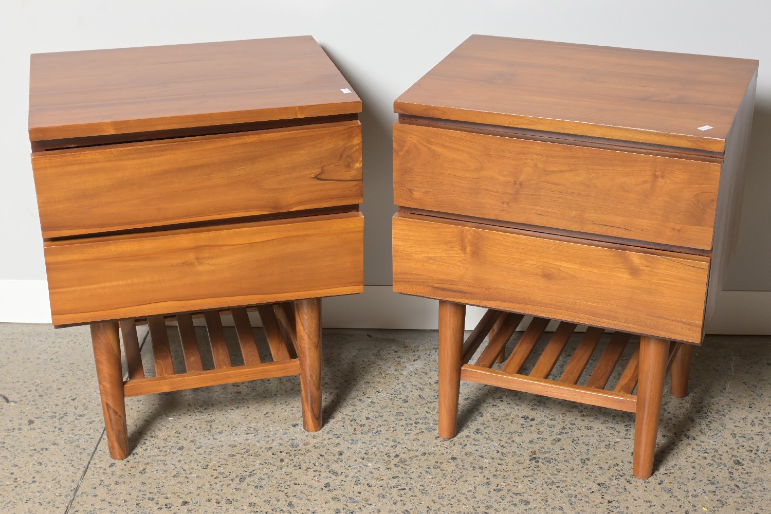 A PAIR OF TEAK BEDSIDE TABLES (H64 X W51 X D41 CM) (LEONARD JOEL DELIVERY: X-LAR'GE)