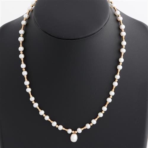 A FRESHWATER PEARL NECKLACE IN 14CT GOLD, 440MM, 12.9GMS