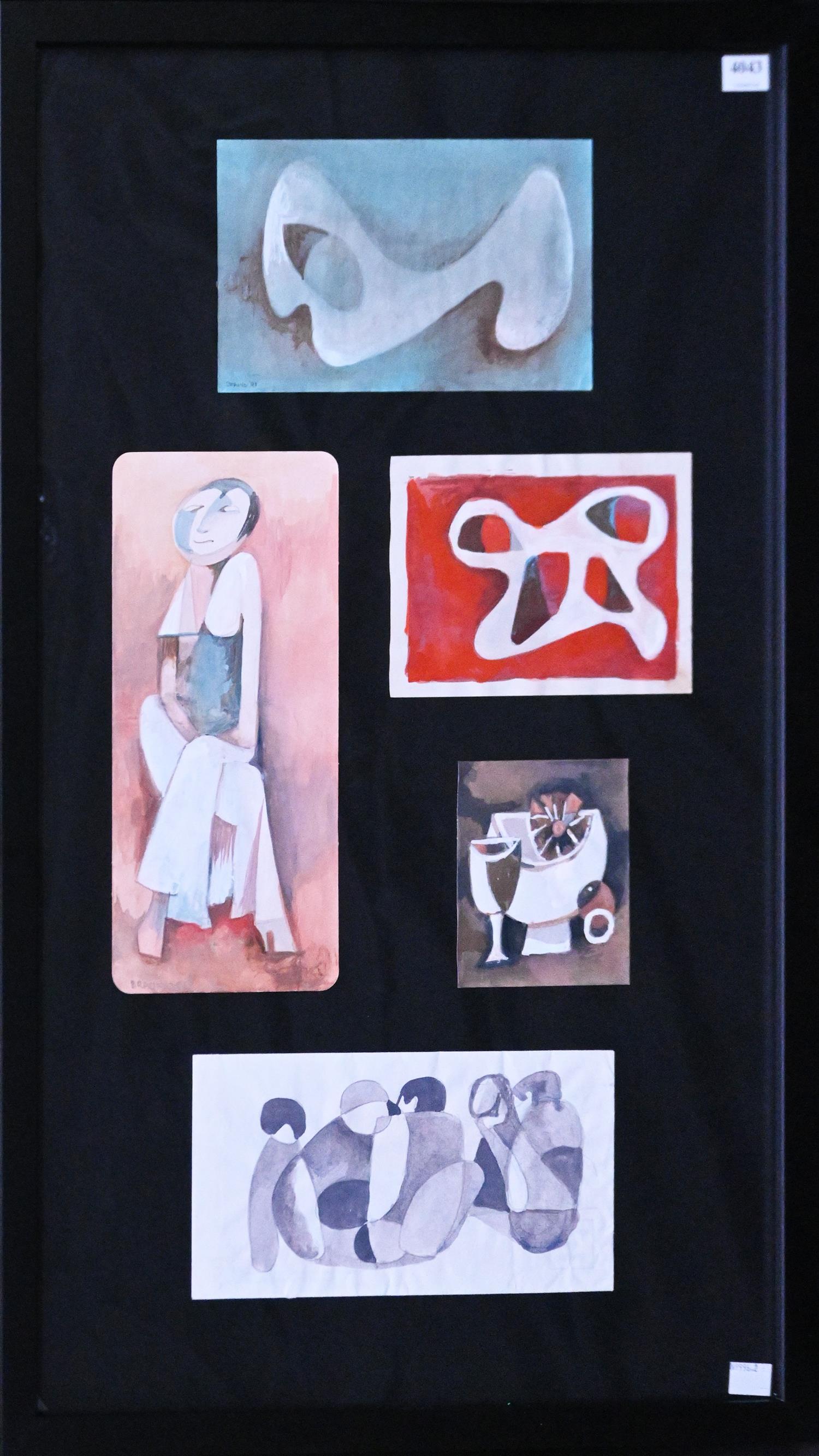 DOROTHY BRAUND, 5 WORKS ON PAPER, MIXED MEDIA ON PAPER (5), TWO WORKS SIGNED AND DATED LOWER LEFT, LARGEST MEASURING 27 X 12CM, OVERALL FRAME SIZE: 71.5 X 45.5CM