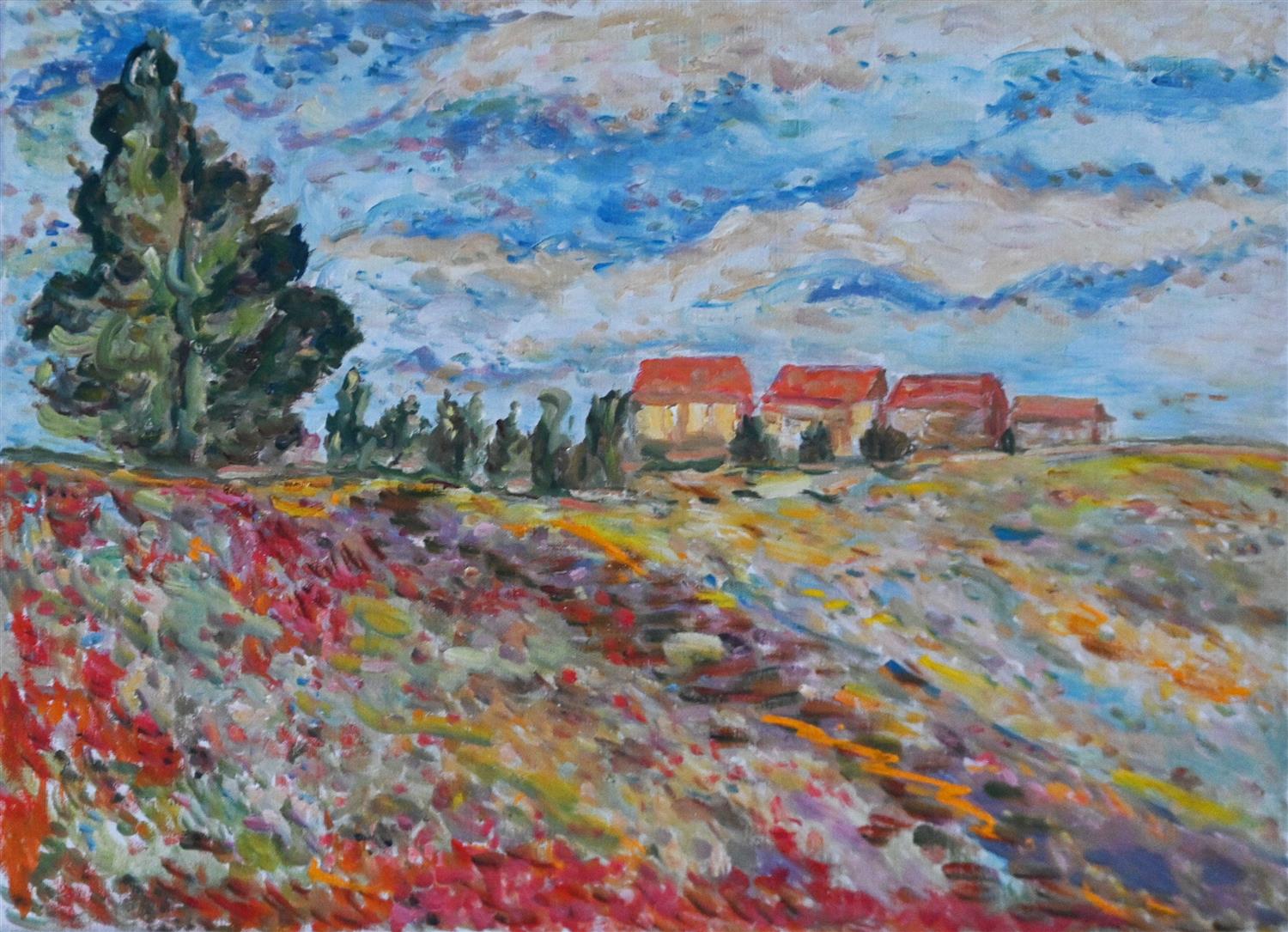 INA ROSE, (LANDSCAPE), OIL ON CANVAS, UNSIGNED, 52 X 70CM