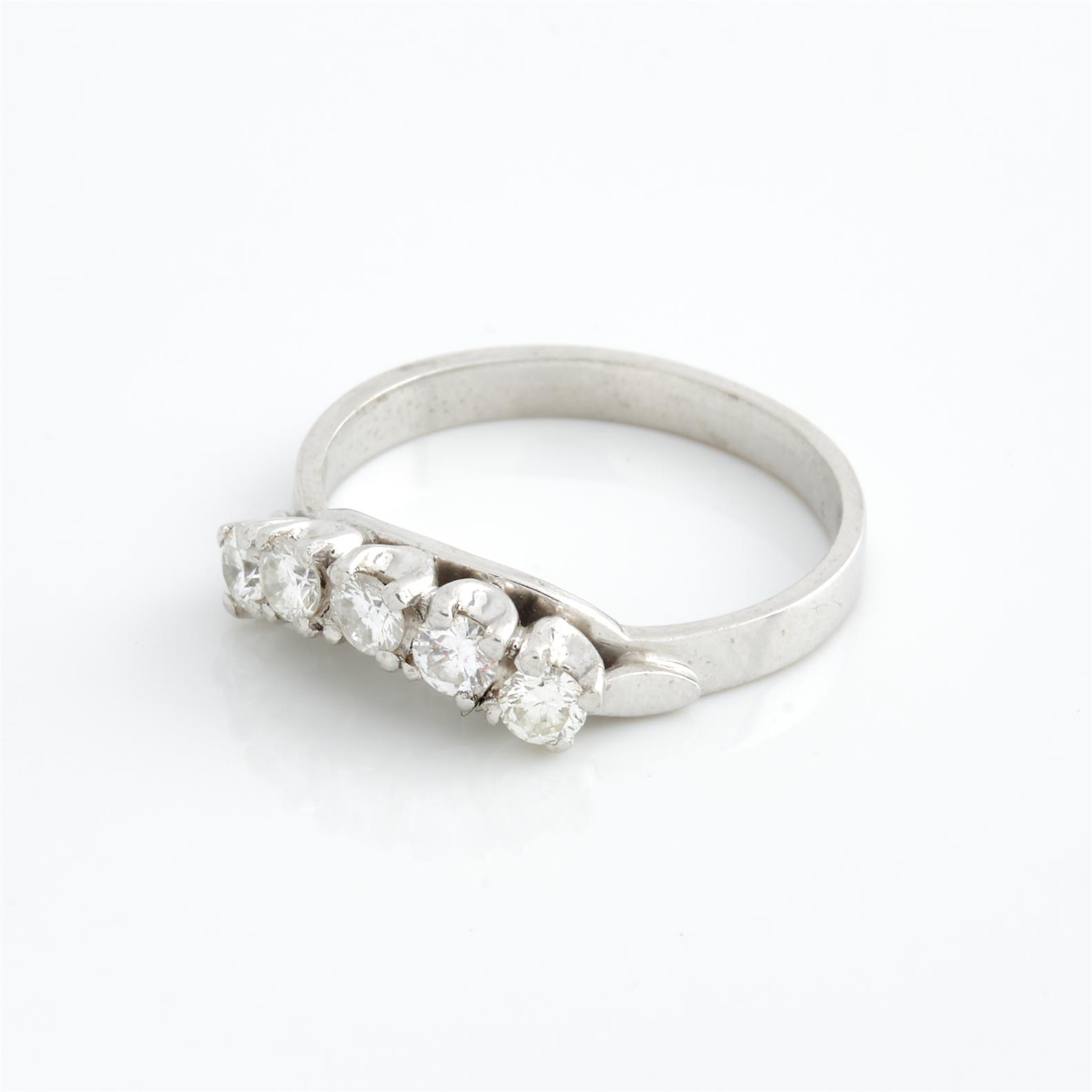 A FIVE STONE DIAMOND RING IN 18CT WHITE GOLD, SIZE M, 3.5GMS