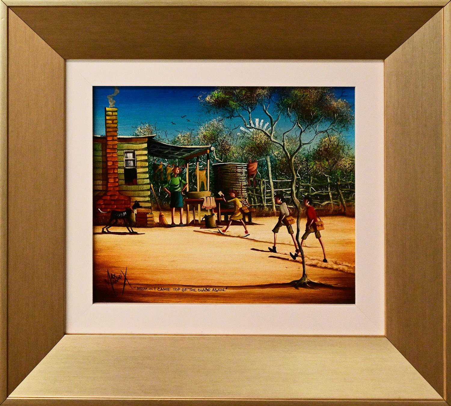MAX MANNIX, MUM - I CAME TOP OF THE CLASS AGAIN, OIL ON CANVASBOARD, SIGNED AND TITLED LOWER LEFT, 24 X 29CM, FRAME SIZE: 45 X 49CM
