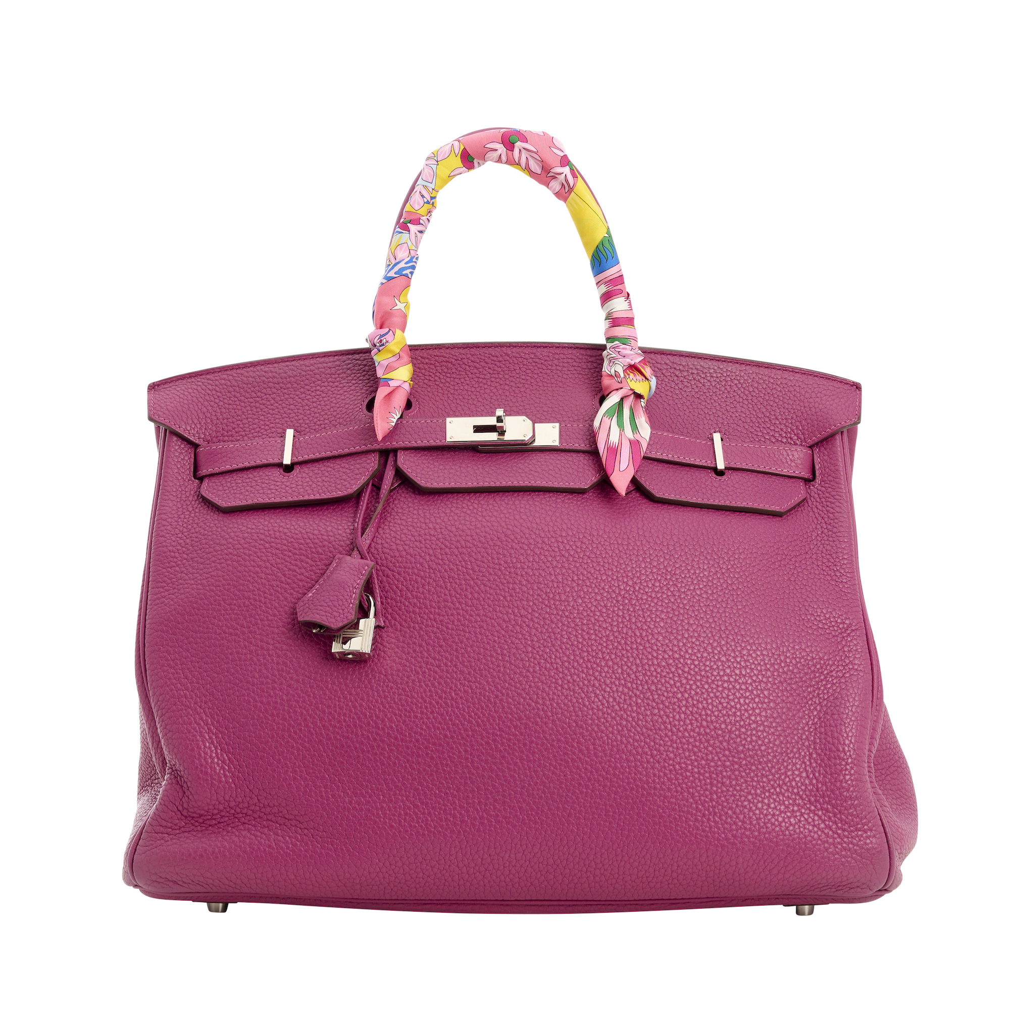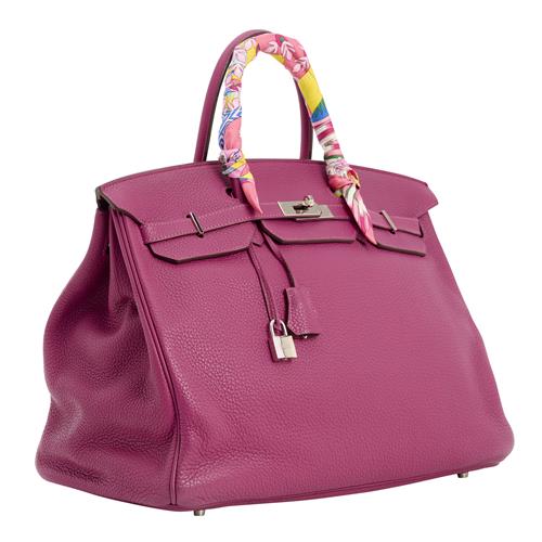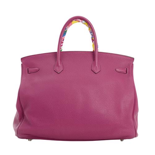 Styled in pink Tosca Togo leather with palladium hardware, 40 x 29 x 21cm.