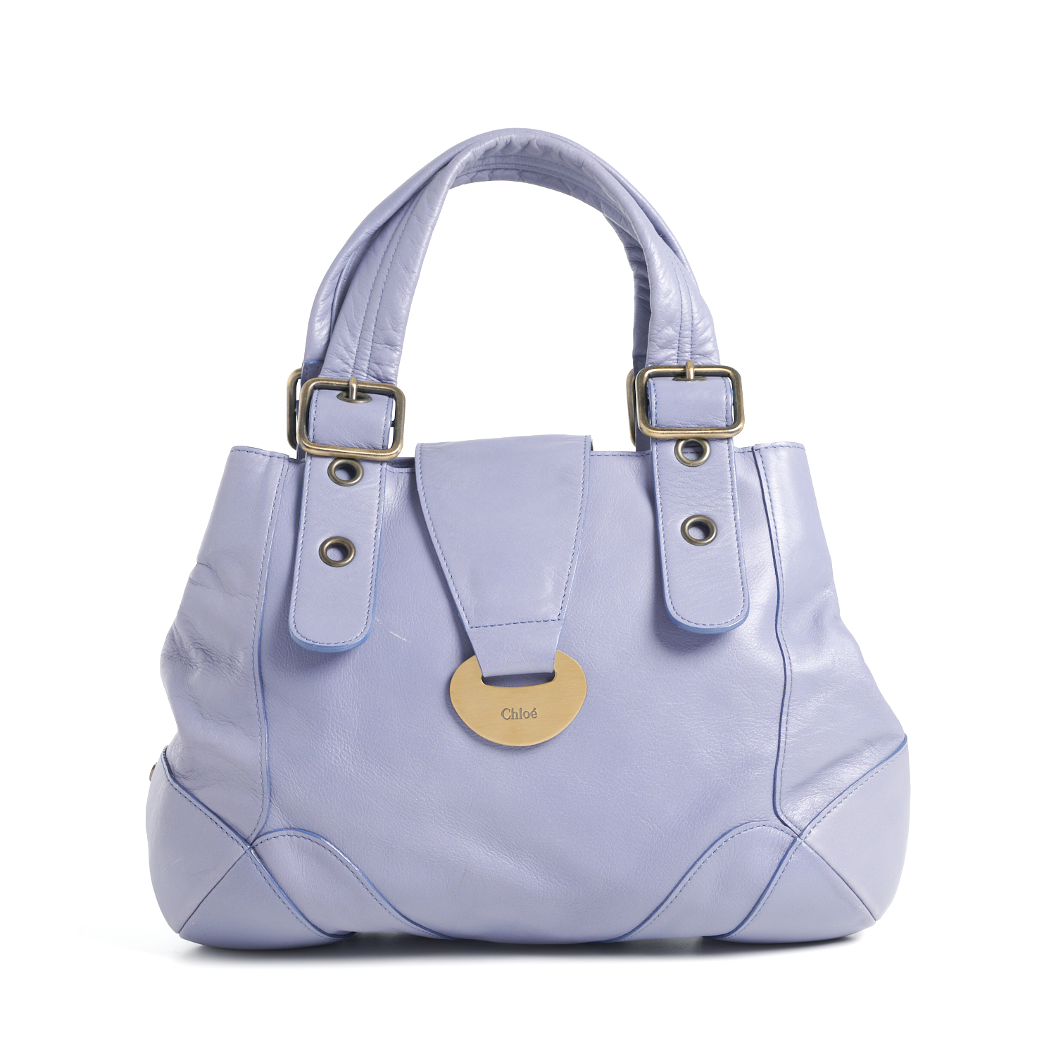 CHLOÉ, A TOP HANDLE BAG STYLED IN LILAC LEATHER WITH MAGNETIC CLOSURE AND GOLD TONE HARDWARE, 26 X 35 X 8CM