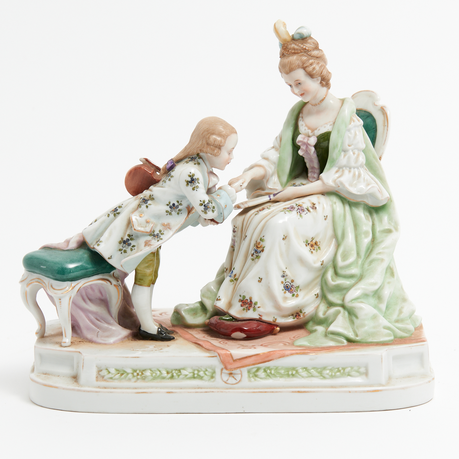 A SHEIBE-ALSBACH PORCELAIN FIGURAL GROUP OF A LADY WITH CHILD VIOLINIST H.17.5CM, LEONARD JOEL DELIVERY SIZE: SMALL