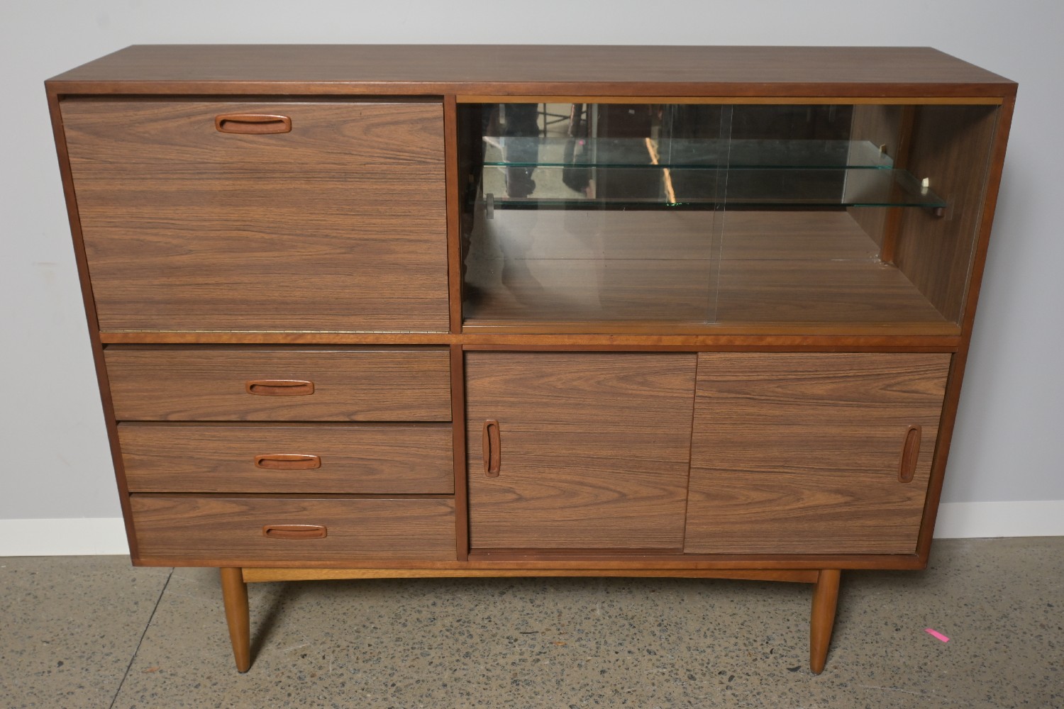 A MID-CENTURY HIGHBOARD BY CHATLEY PRODUCTIONS (118H X 150W X 40D) (PLEASE NOTE THIS HEAVY ITEM MUST BE REMOVED BY CARRIERS AT THE CUSTOMER'S EXPENSE. LEONARD JOEL STAFF CANNOT ASSIST CARRYING THIS ITEM) (X-LARGE)