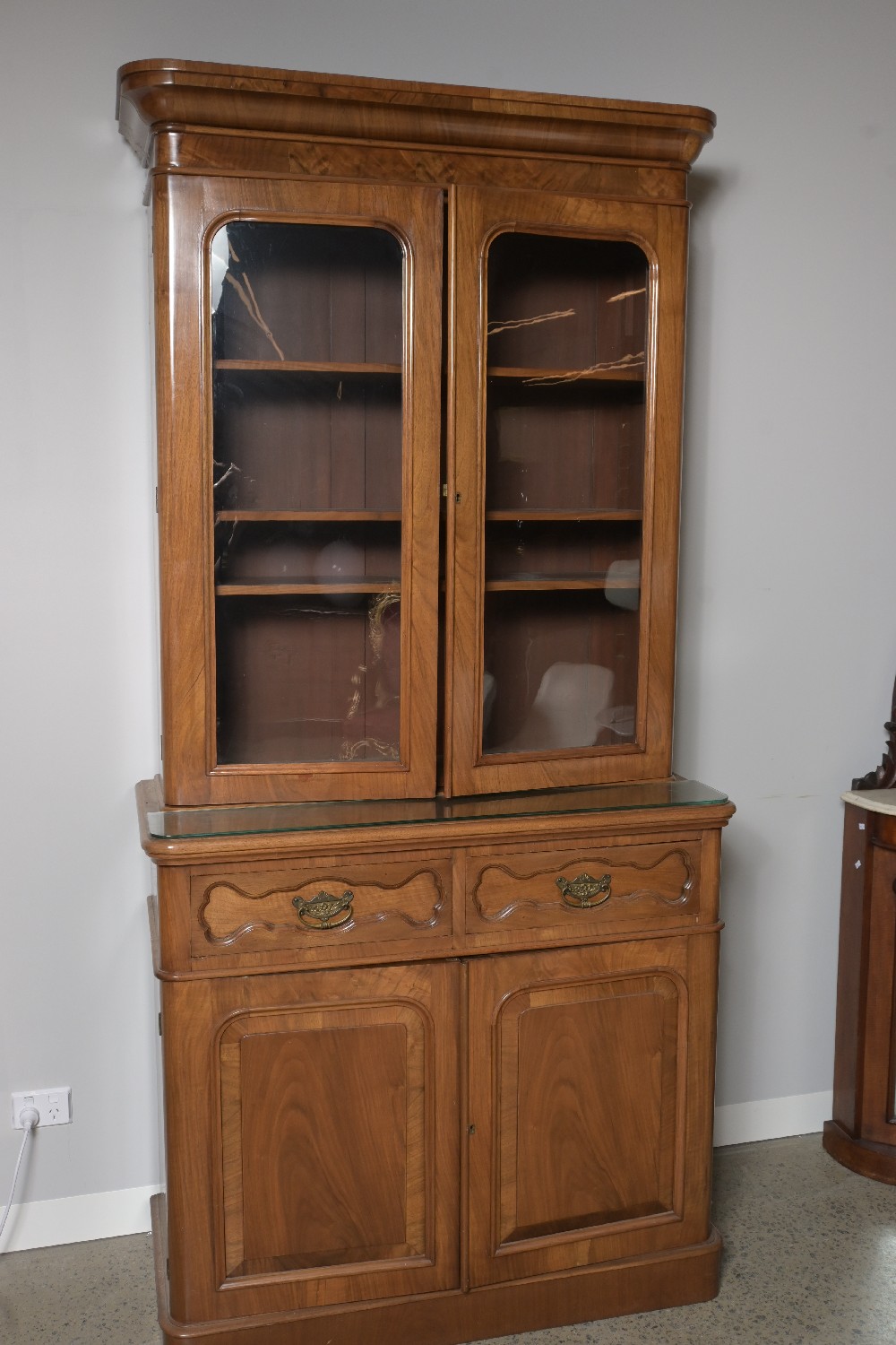 A FRENCH STYLE DOUBLE BODIED BOOKCASE/DISPLAY CABINET (A/F) (221H X 107W X 47D CM) (PLEASE NOTE THIS HEAVY ITEM MUST BE REMOVED BY CARRIERS AT THE CUSTOMER'S EXPENSE. LEONARD JOEL STAFF CANNOT ASSIST CARRYING THIS ITEM) (X-LARGE)