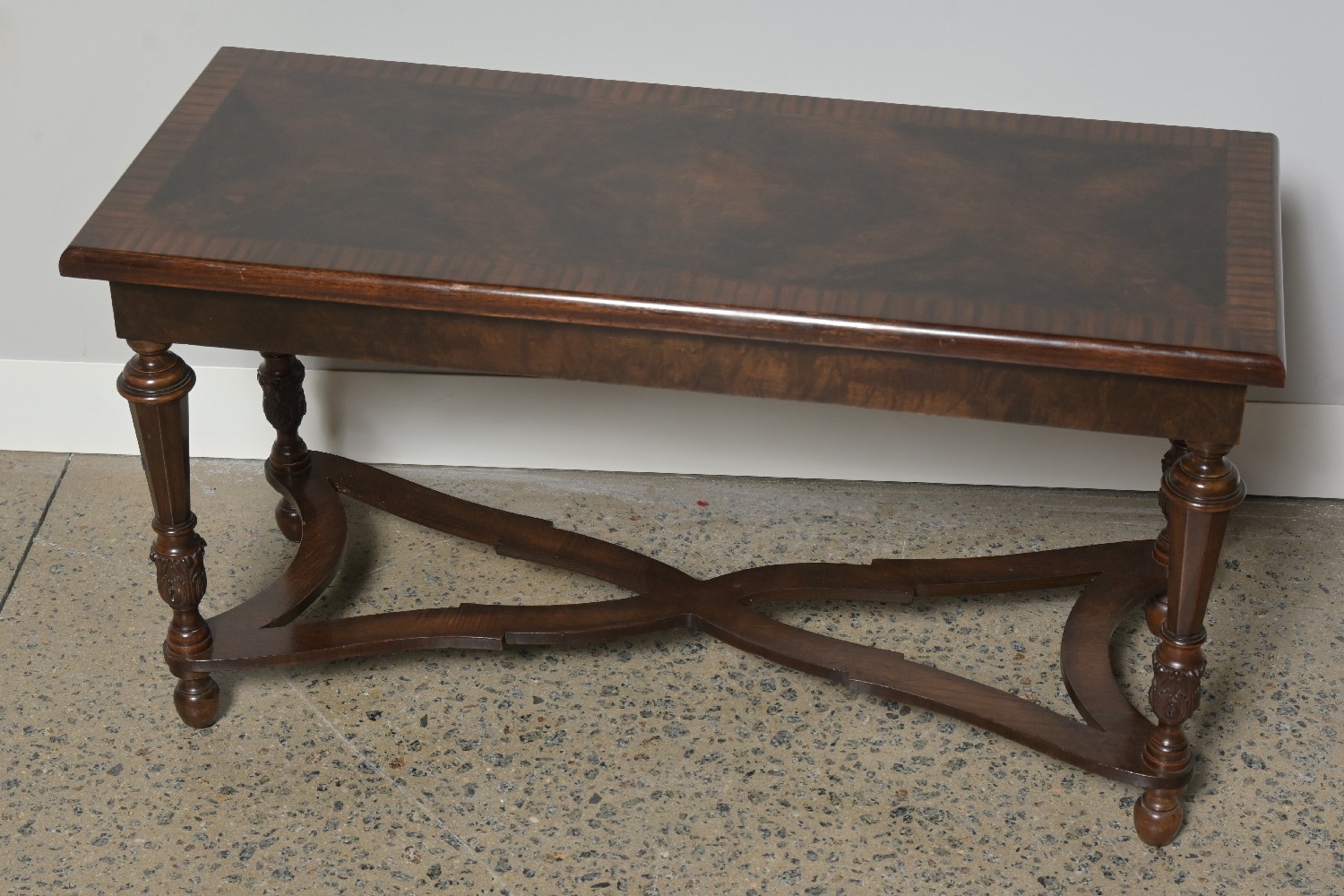 AN ANTIQUE STYLE MAHOGANY COFFEE TABLE (46H X 87W X 36D) (LEONARD JOEL DELIVERY: LARGE)