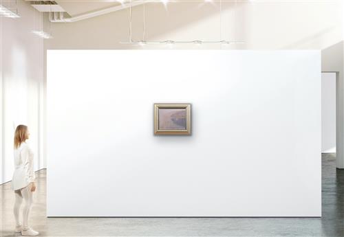 The present lot was painted just a year following, in 1920, where we see first-hand the use of Gruner's painterly techniques to explore the effects of light and movement upon water. Short daubs of paint knit together to form the dense vegetation on the shore, whilst lengthier vertical strokes blend together over the water to create a moody atmosphere. The hint of movement in the otherwise calm waters is inferred by the patches of horizontal brush strokes in the foreground. The slightly elevated point of view allows for an expansive vista across the harbour to the misted headland in the distance. Whilst the shadow of the nearer headland looms further over the water as night begins to descend.