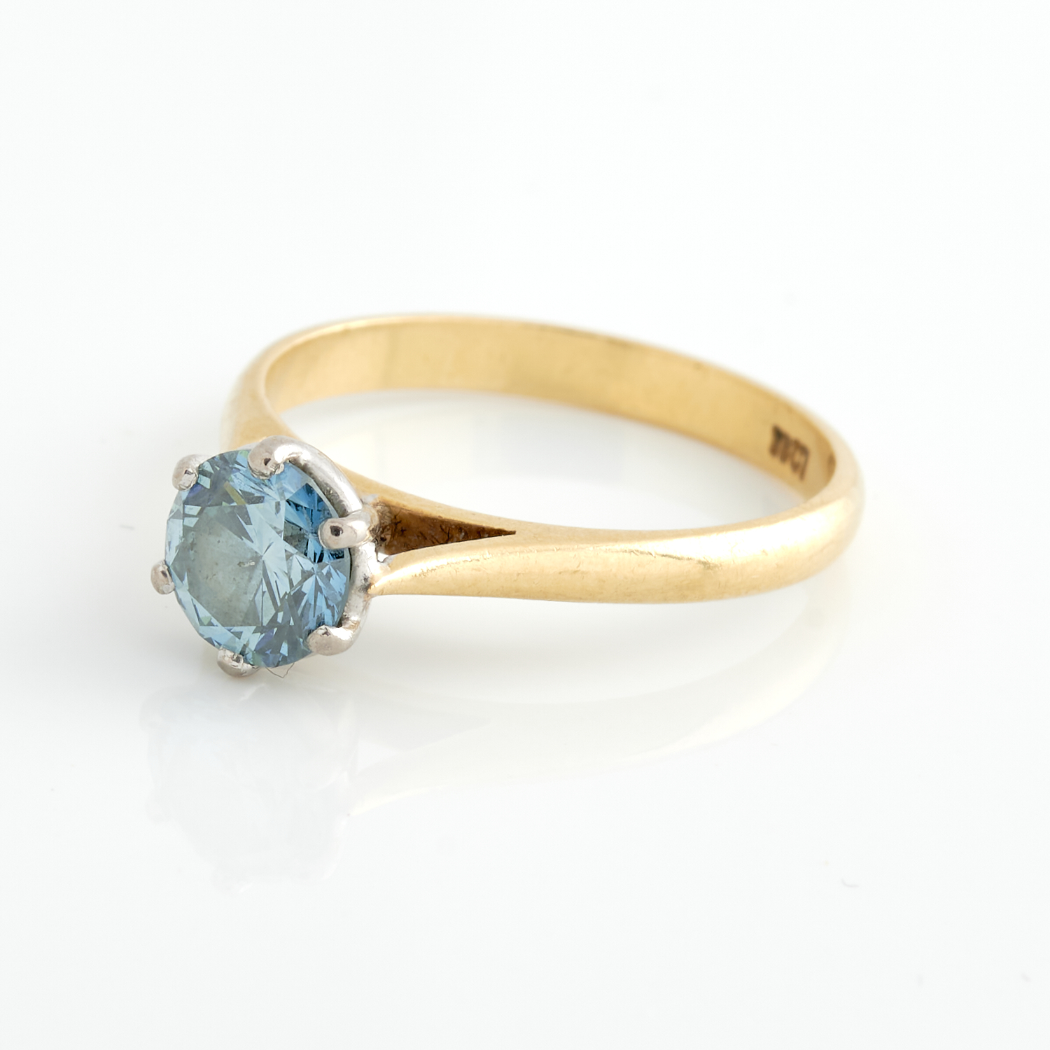 A TREATED BLUE DIAMOND RING IN 18CT GOLD, SIZE O, 3.1GMS