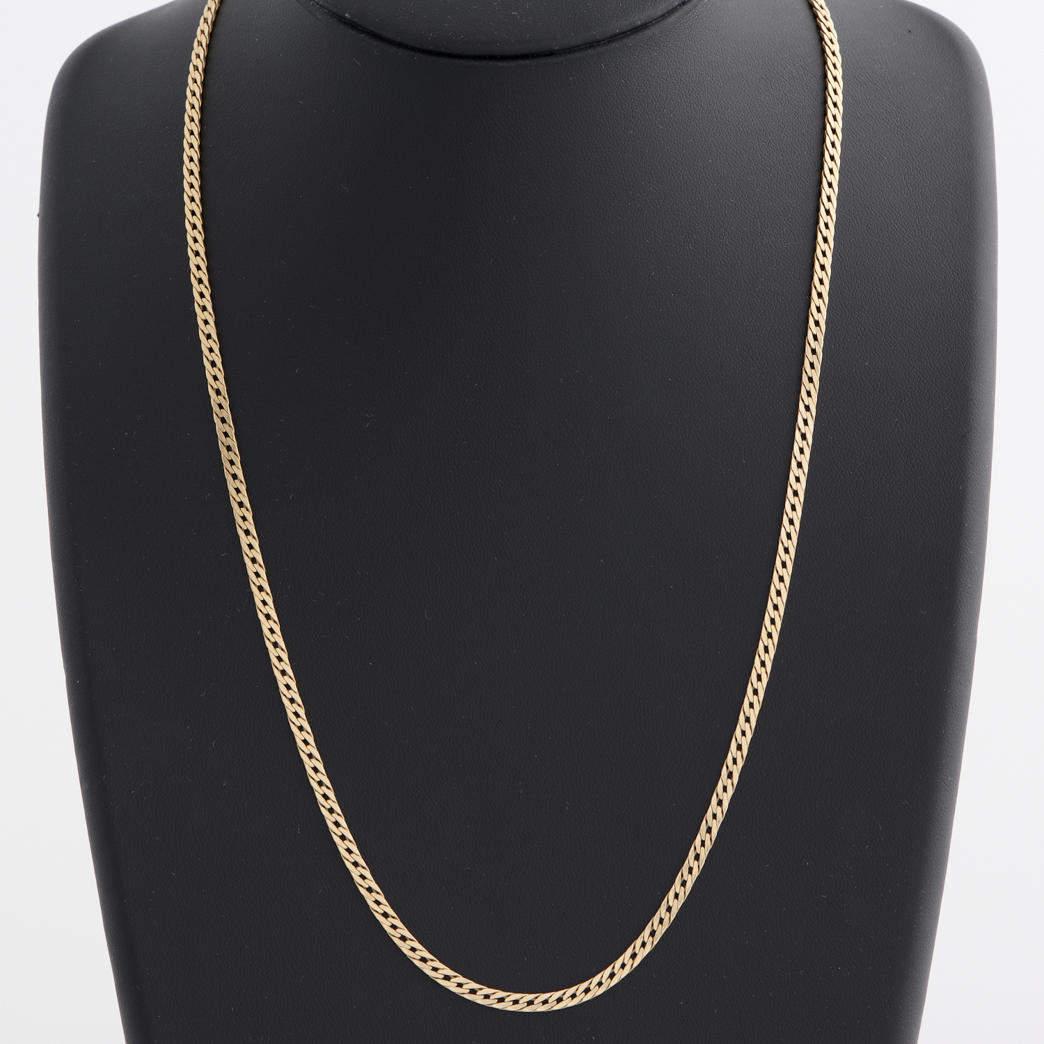 A SNAKE LINK CHAIN IN 14CT GOLD, TO A TONGUE AND GROOVE CLASP, 550MM, 15.5GMS