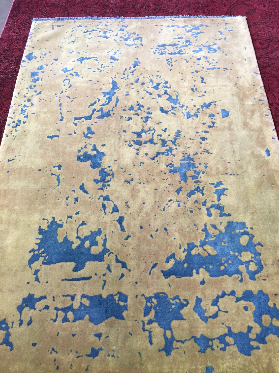 BRAND NEW MODERN CONTEMPORARY DESIGNER EVEREST RUG. 100% PLUSH WOOL PILE WITH SILKY VISCOSE TEXTURE. IN TONES OF LIGHT CARAMEL AND SUNSET MANDARIN. HANDMADE LOOM KNOT. CONDITION: NEW CONDITION, EX GALLERY. SIZE: 239 X 165 CM- ORIGIN: PERSIA - RRP: $1,600 DOCUMENTATION OF AUTHENTICITY INCLUDED