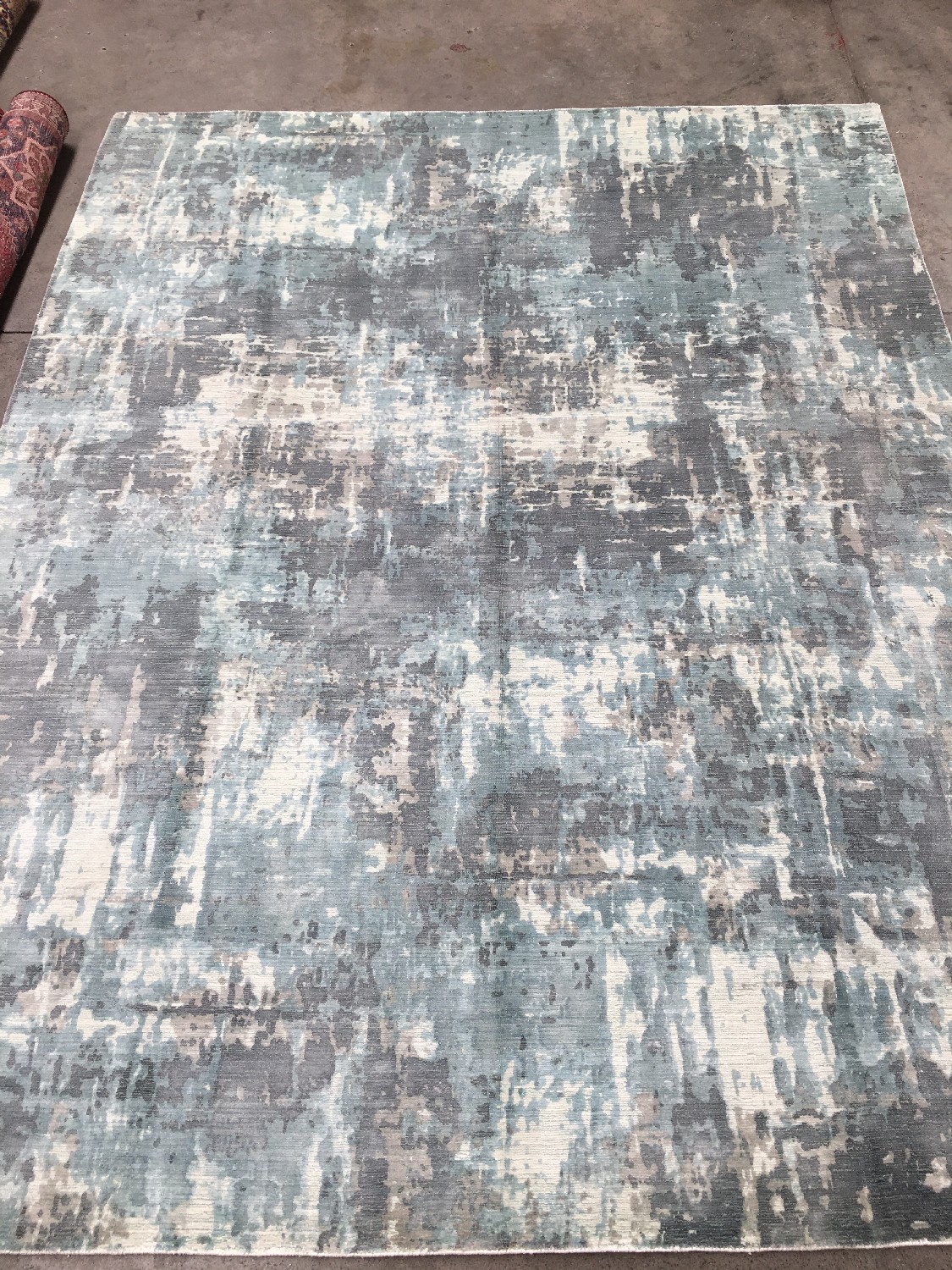 A NEW MODERN TEXTURED GLACIER WOOL AND VISCOSE RUG IN IVORY AND GREY TONES SIZE: 358 X 275 CM ORIGIN: INDIA