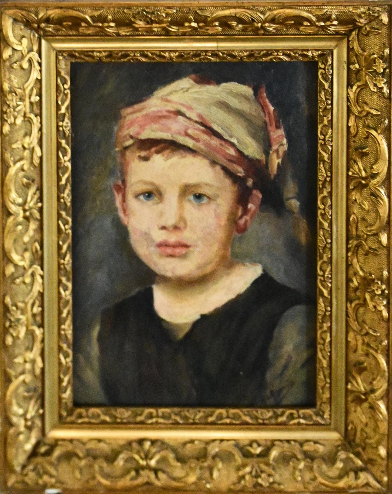 SIGNED M.L.R., (PORTRAIT OF A BOY), OIL ON BOARD, SIGNED LOWER RIGHT, 25 X 17.5CM, FRAME SIZE: 36 X 28CM