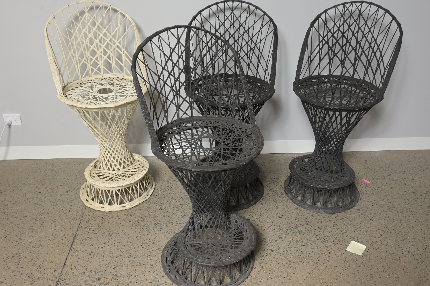A SET OF FOUR RUSSEL WOODARD SPUN FIBREGLASS CHAIRS (104 H X 50 DIA CM)(LEONARD JOEL DELIVERY: LARGE)
