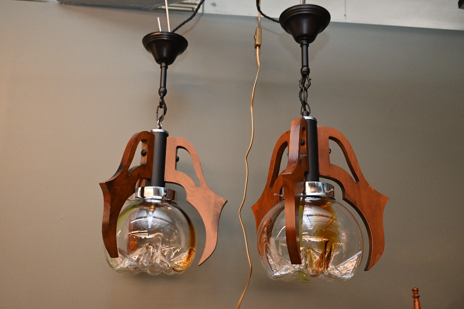 A PAIR OF MID-CENTURY MAZEGGA PENDANT LIGHTS (61H X 32DIA CM) (LEONARD JOEL DELIVERY: LARGE)