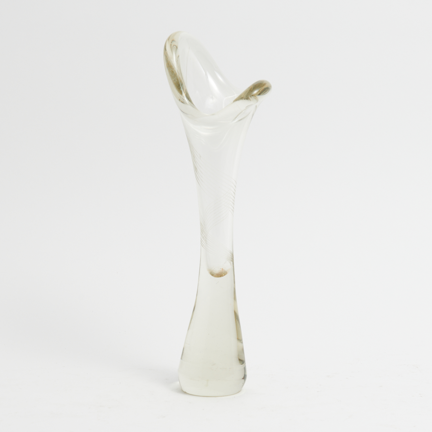 A MID-CENTURY SIGNED KALLA VASE BY MIKKO HELANDER FOR HUMPPILAN LASI, FINLAND H.31CM, LEONARD JOEL DELIVERY SIZE: SMALL