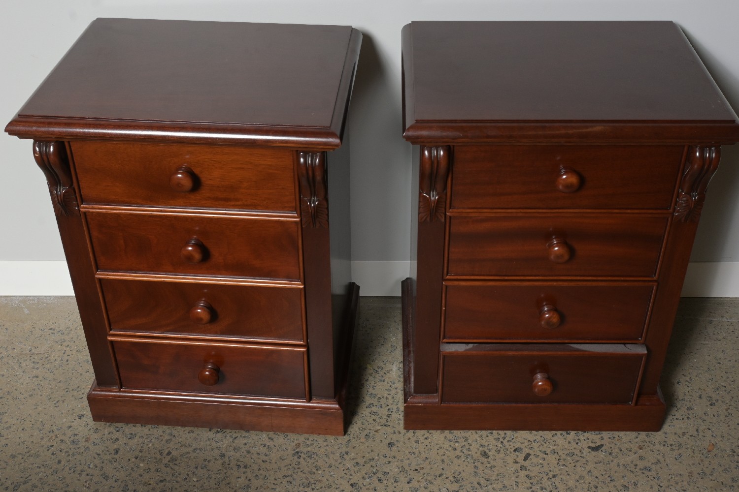 A PAIR OF MAHOGANY FOUR DRAWER BEDSIDE CABINETS (68H X 51W X 40D CM) (LEONARD JOEL DELIVERY: X-LARGE)