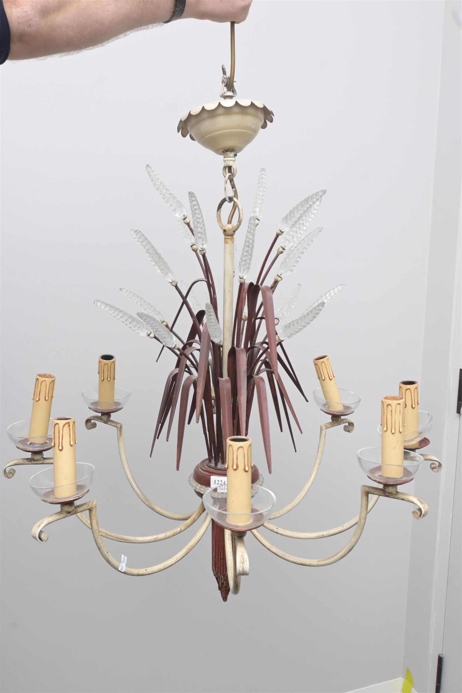 A METAL AND GLASS CHANDELIER (82H X 67DIA CM) (LEONARD JOEL DELIVERY: LARGE)
