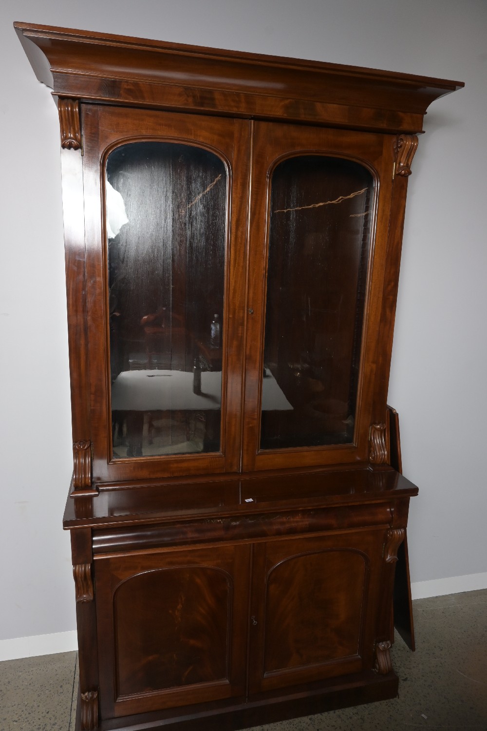 A MAHOGANY BOOKCASE WITH INBUILT WINE CELLARETTE (232H X 140W X 52D CM) (PLEASE NOTE THIS HEAVY ITEM MUST BE REMOVED BY CARRIERS AT THE CUSTOMER'S EXPENSE. LEONARD JOEL STAFF CANNOT ASSIST CARRYING THIS ITEM) (X-LARGE)