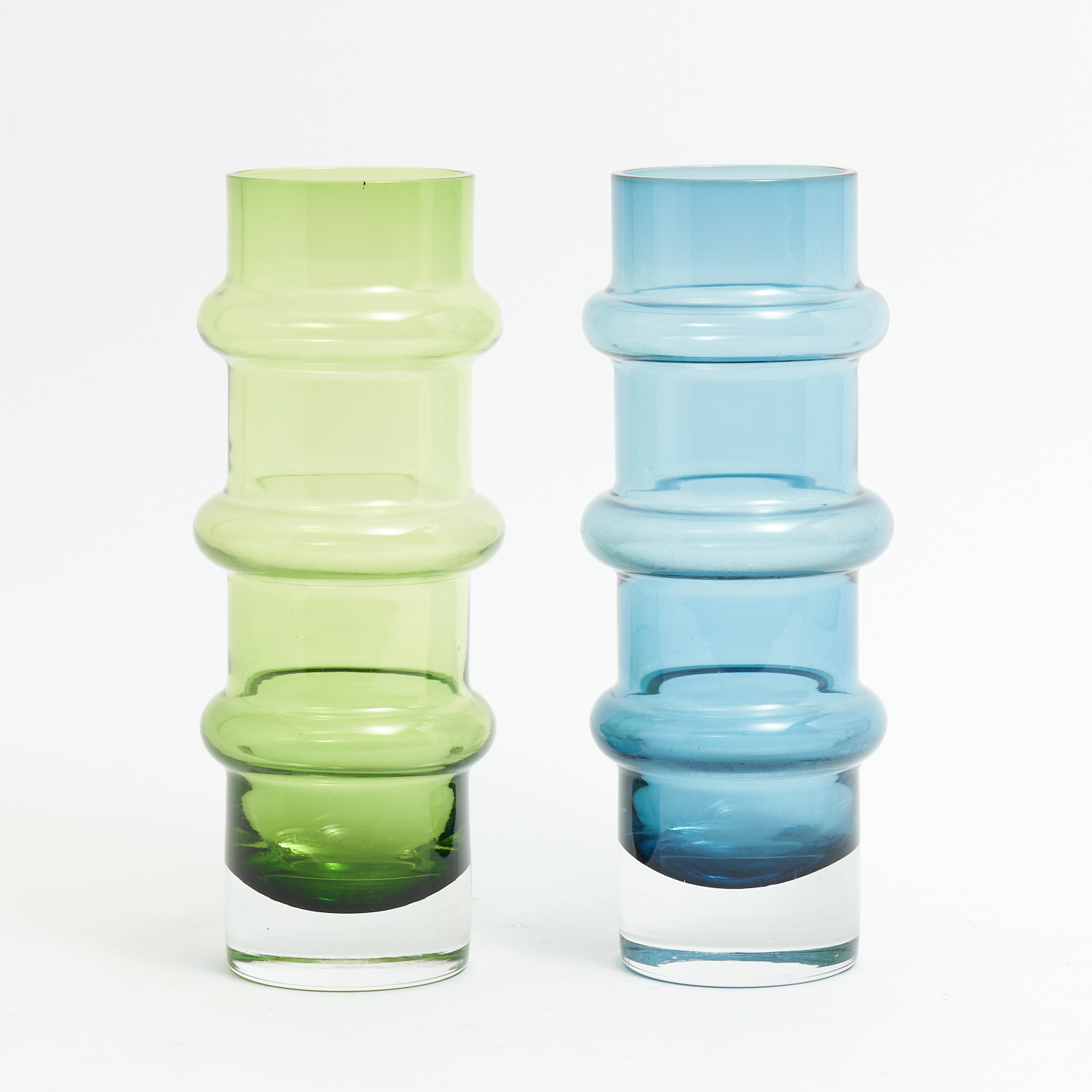 TWO MID-CENTURY HOOPED VASES BY BO BORGSTROM FOR ASEDA, SWEDEN H.24CM, LEONARD JOEL DELIVERY SIZE: MEDIUM