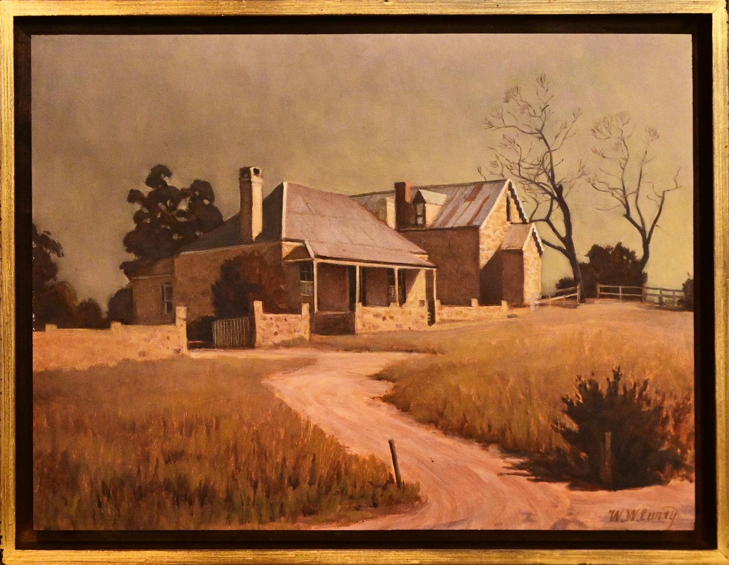WARREN CURRY, WINTER AFTERNOON BERRIMA, OIL ON BOARD, SIGNED LOWER RIGHT, 29.5 X 39CM, FRAME SIZE: 33.5 X 43.5CM