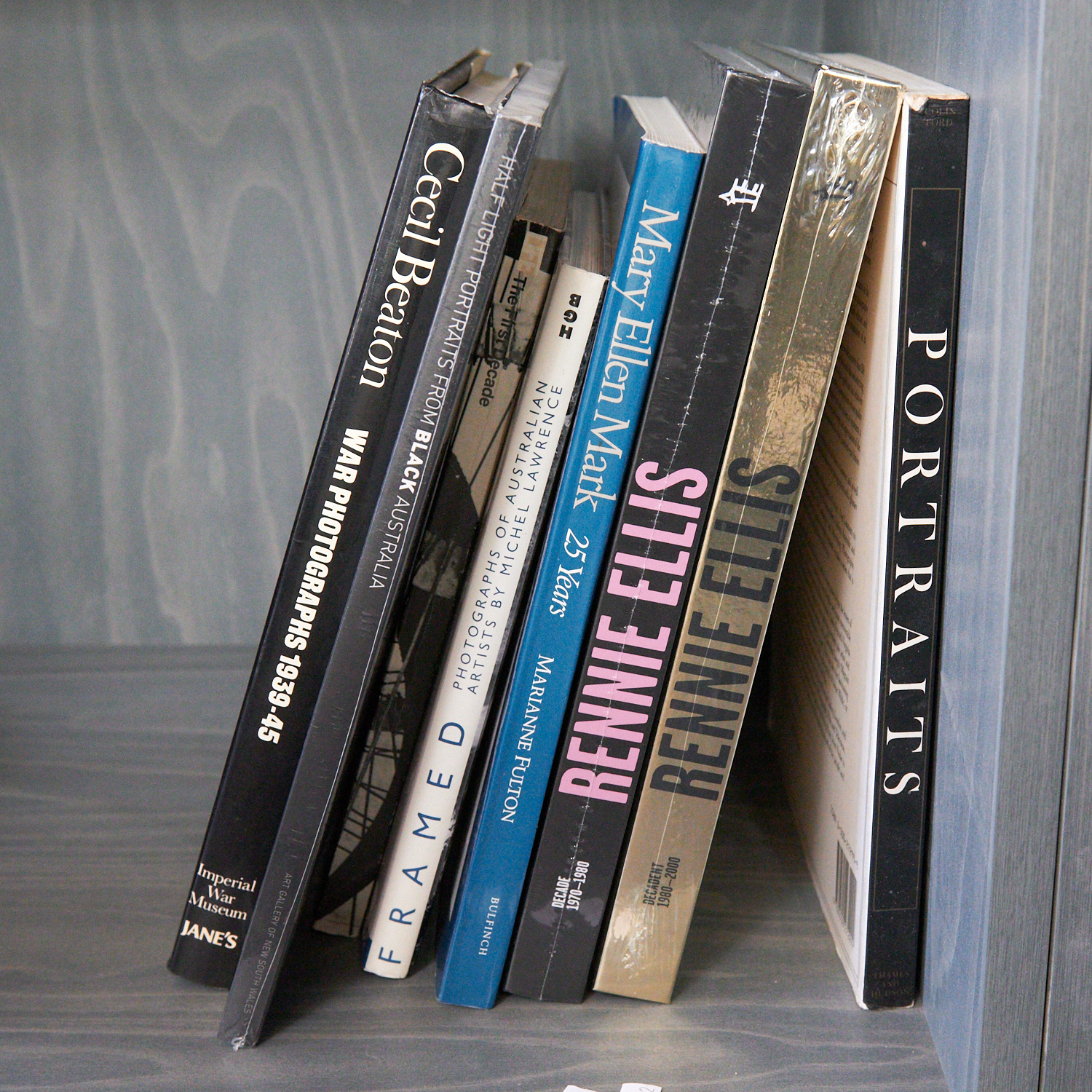 EIGHT BOOKS ON MODERN PHOTOGRAPHY INCLUDING TWO UNOPENED OUT OF PRINT RENNIE ELLIS, AND HALF LIGHT PORTRAITS FROM BLACK AUSTRALIA, LEONARD JOEL DELIVERY SIZE: MEDIUM