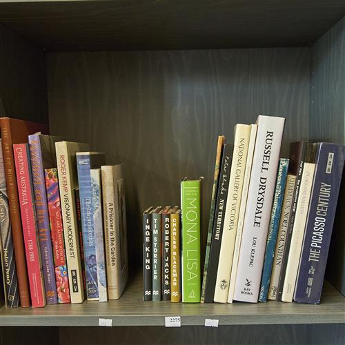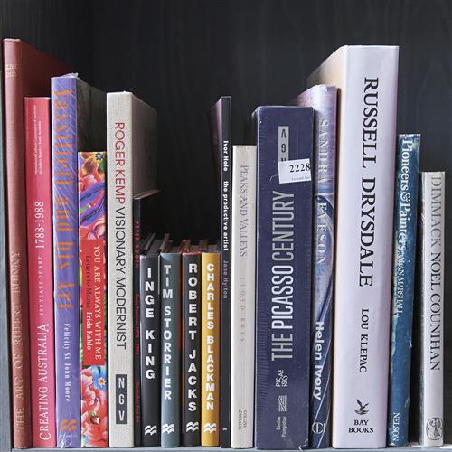 A SHELF OF AUSTRALIAN AND INTERNATIONAL ART REFERENCE BOOKS INCLUDING LETTERS TO MUMMA: FRIDA KAHLO, CHARLES BLACKMAN MINI SERIES, AND RUPERT BUNNY, LEONARD JOEL DELIVERY SIZE: LARGE