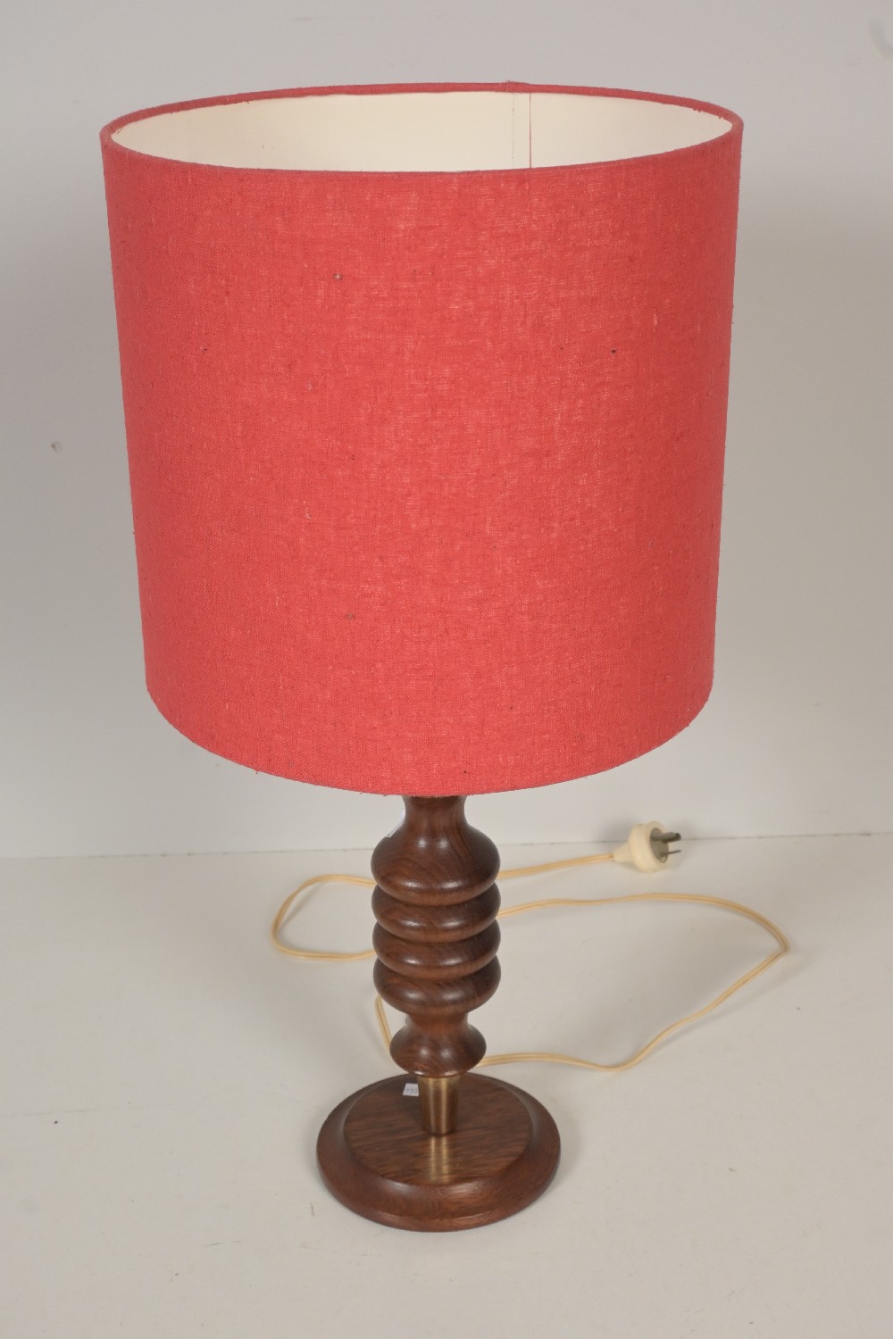 A MID-CENTURY TEAK TABLE LAMP WITH BRASS DETAILS 62H X 31D (LEONARD JOEL DELIVERY: MEDIUM)