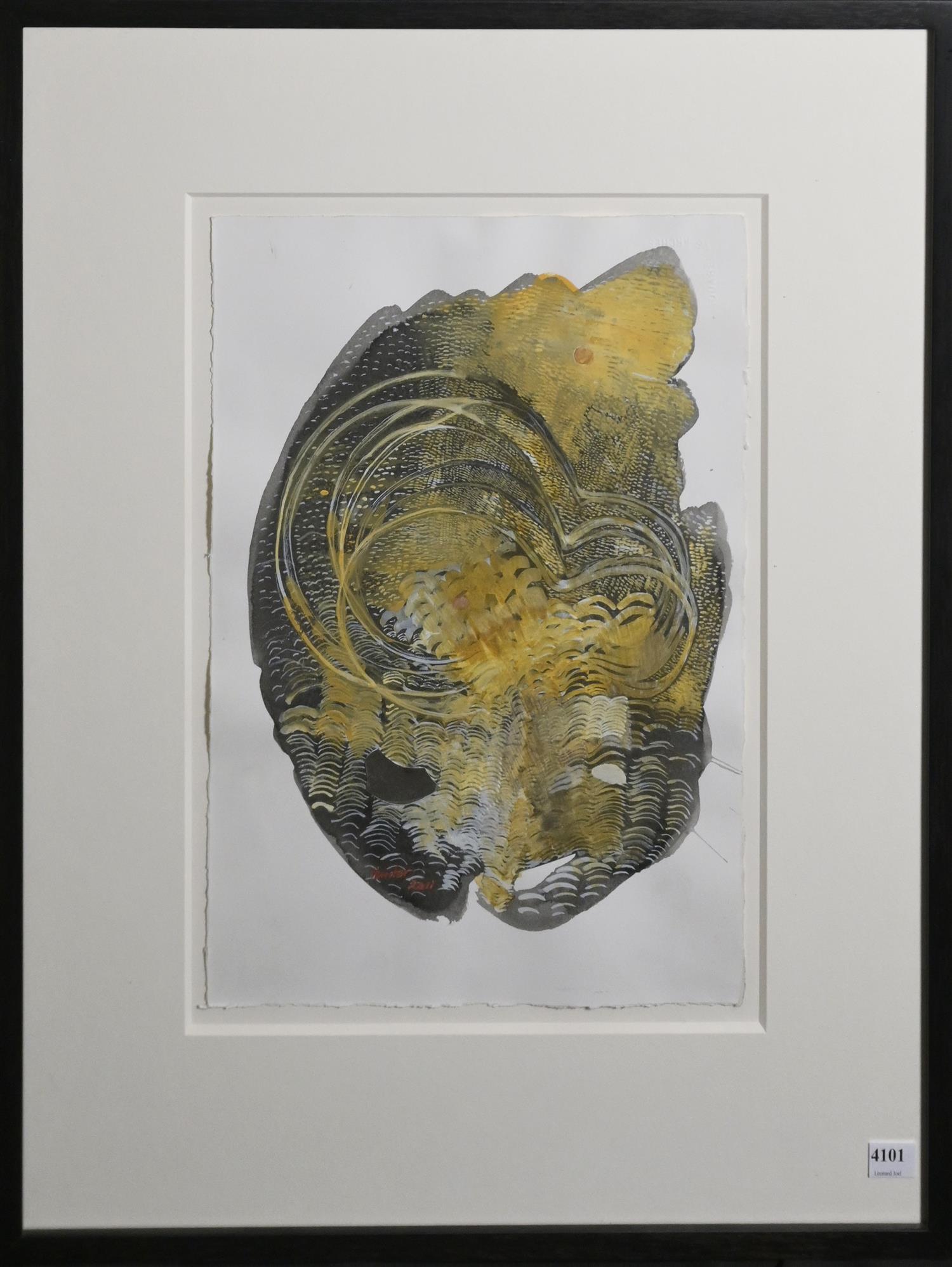 § PHILIP HUNTER, BLOCK NO.1 2011, GOUACHE, INK AND COLLAGE ON PAPER, SIGNED AND DATED LOWER LEFT, 38 X 28CM, FRAME SIZE: 61 X 51CM